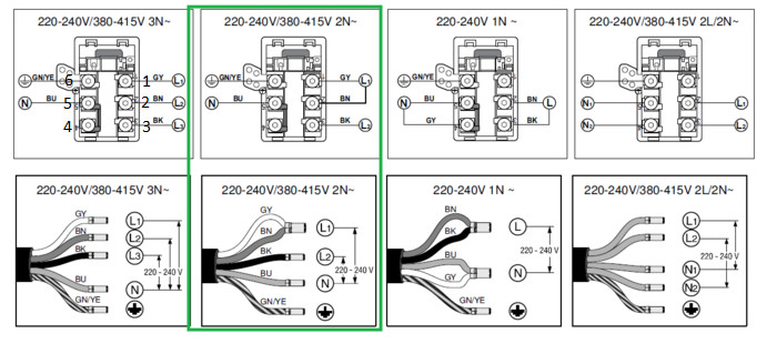 Vad jag inte förstår är varför detta alternativ inte finns med i hällens bifogade inkopplingsmanual. Känns ju konstigt att bygla grå (GY) och brun (BN) ledare till en av faserna. Jag tycker att det första alternativet i bilden ovan borde vara det lämpligaste. Kan det bli fel om jag kopplar enligt detta? Jag behöver ju då inte bygla något i perilex-stickproppen (trångt) eller bygla i hällens anslutning (mer än nollan förstås). Vad tycker ni om detta alternativ?