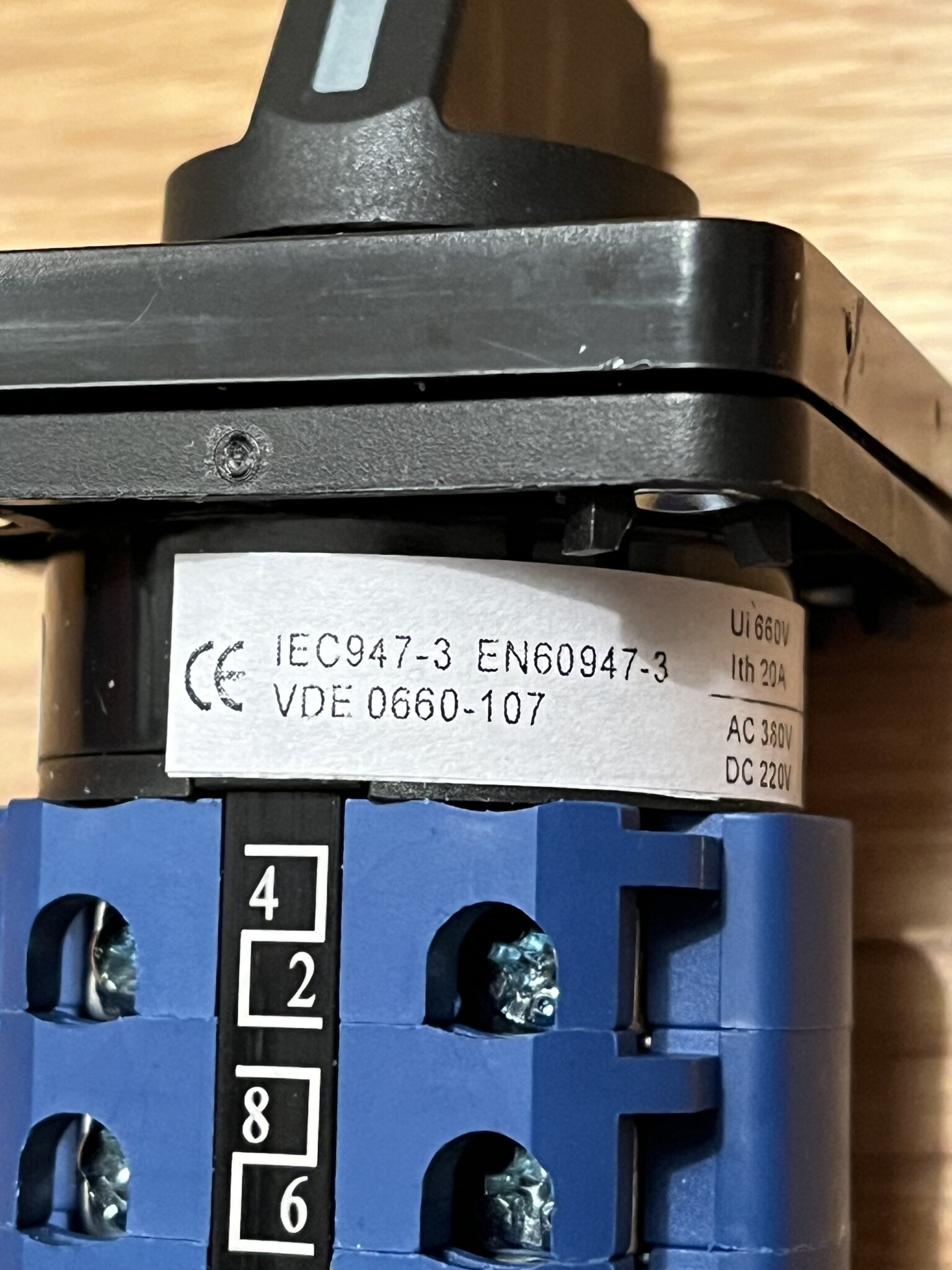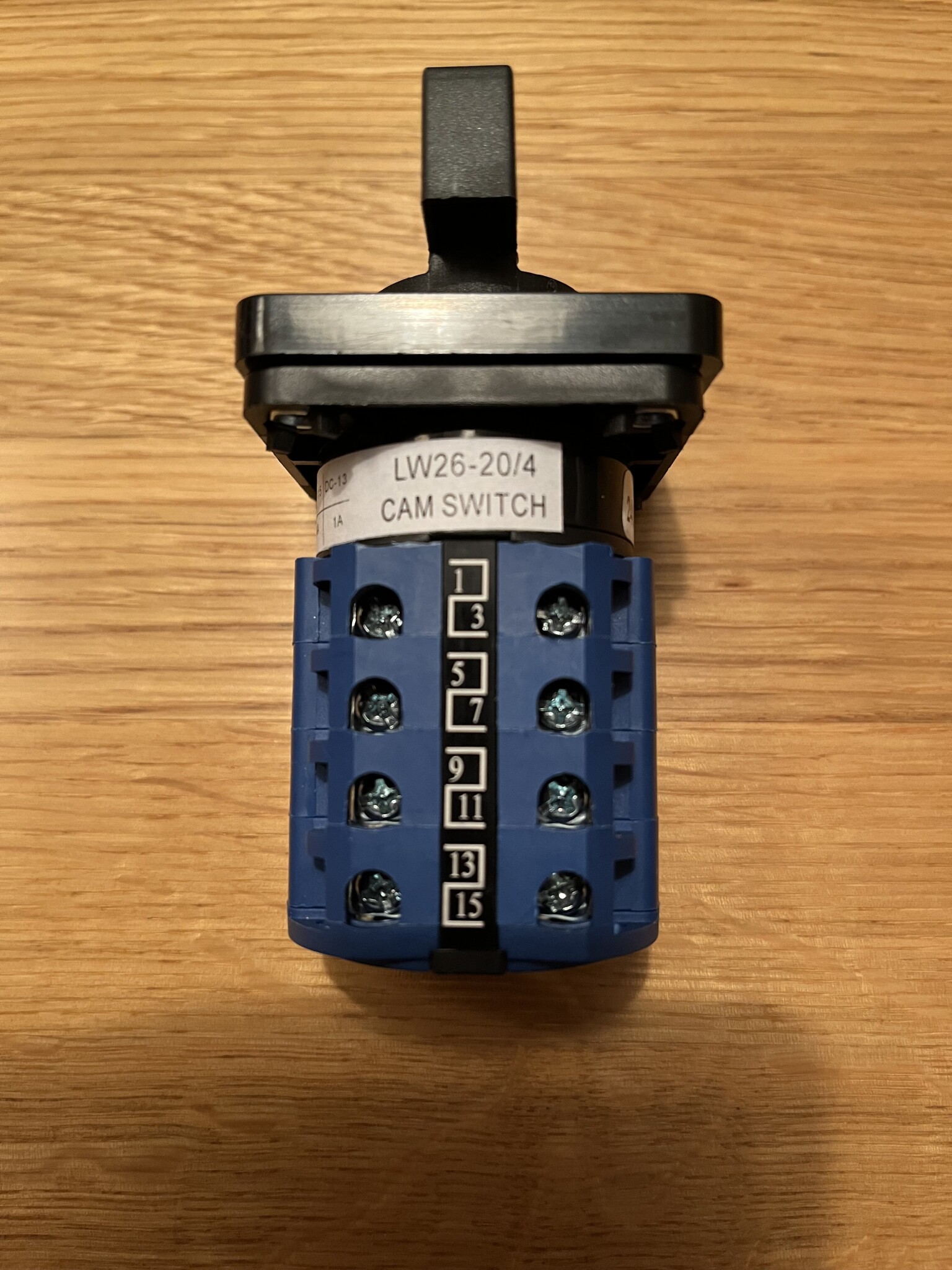 Är det någon som kan hjälpa mig med kopplingsschema till denna Vridomkopplare, vilken jag hade för avsikt att använda till en mindre 3-fas motor för att kunna ändra rotationsriktning?