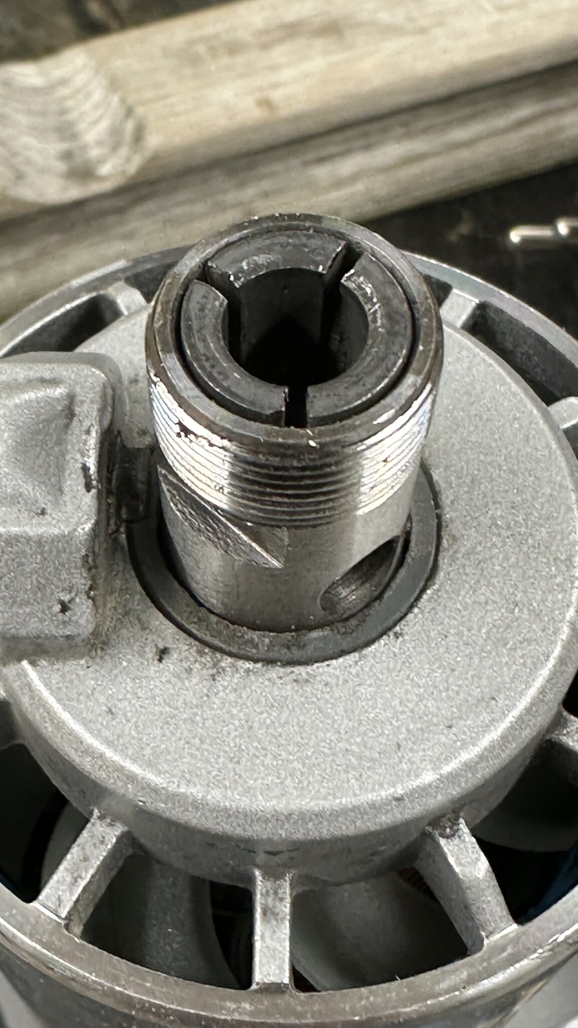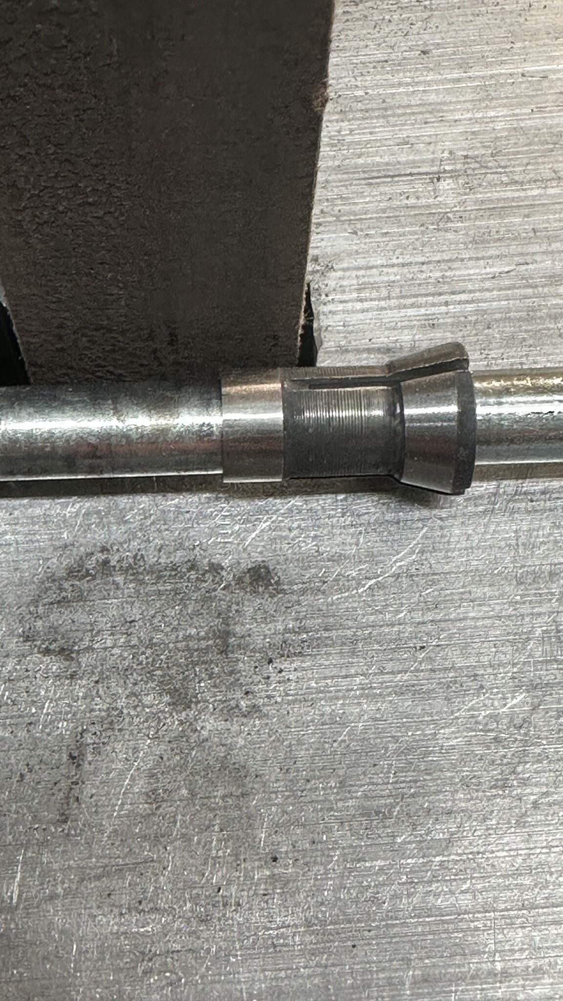 Jag löste ett problem men fick genast ett nytt! Hylsan är för smal i den konade klämdelen framtill så den försvinner ner i fräsens axel och går ej att spänna ihop.