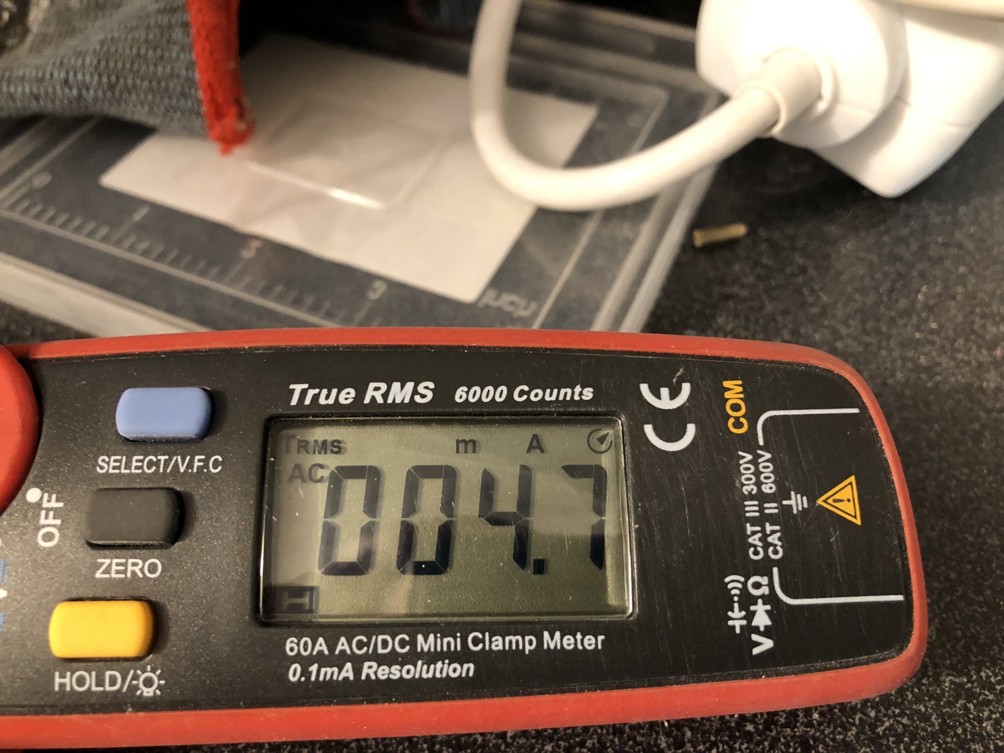4.7mA blev det med tången, låter rimligt tycker jag.