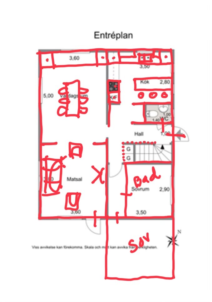 Vi försöker klura ut hur vi ska renovera och har fastnat lite i utformning av planlösningen.