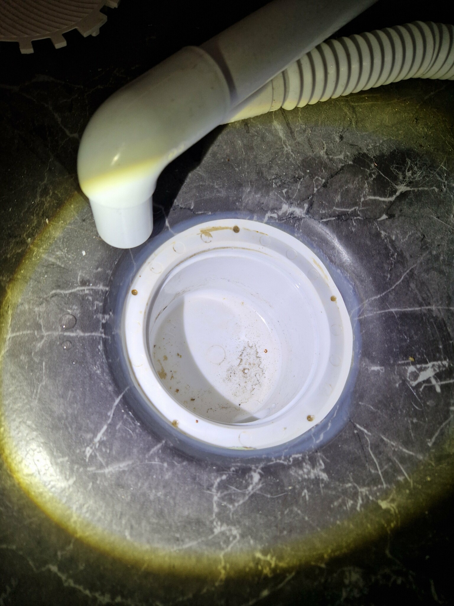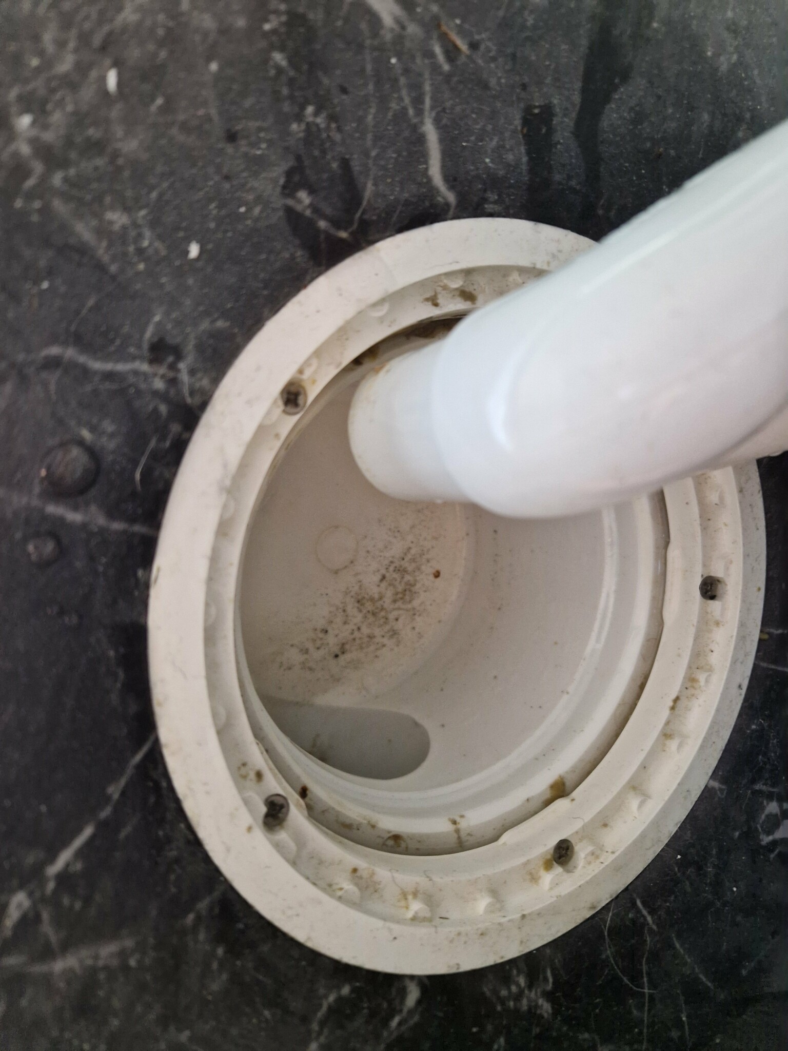 Jag kan inte se om det är fix eller smuts som ligger där eller om det är en bit av brunnsmanschetten som sticker fram. Det senare är inte bra.