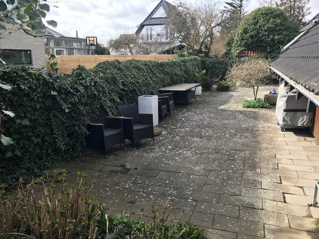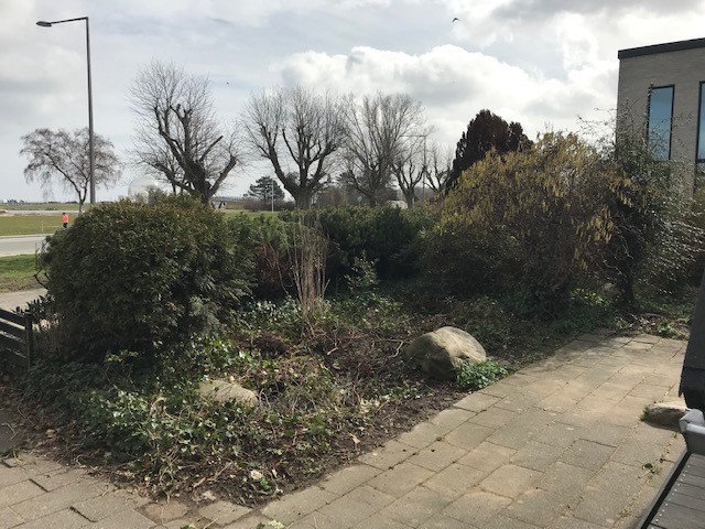 3. Här syns den förbannade häcken i murgröna och plattläggningen på sydlig sida av tomten.