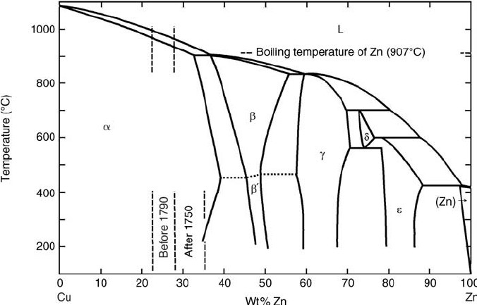Jag kan hålla med om att diagrammet på ett bra sätt beskriver de olika faserna hos mässing vid olika temperaturer och olika inblandning av Zn. Men det motsäger inte mitt påstående om att avzinkning skulle ske redan vid en temperatur av 420-430 grader. Luftens syre, är väl här den stora boven som går i förening med zinken och bildar zinkoxid som blåses bort av lågan. Ju varmare ju större avzinkning.mattiasp skrev:
