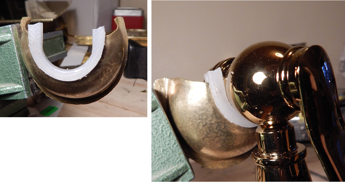 På bilden visar jag hållaren för bidéduschen, slitsen fram skall vara ca 25mm men jag behöver sko den på något sätt så jag inte repar duschhandtaget när jag hänger dit den. Funderade på om man skulle bocka ca 3mm mässingstråd och löda fast runt kanten och sen ta teflonslang som man slitsar upp och trär på. Men jag är osäker på om man får det att bli snyggt. Kan ni bidra med några idéer??