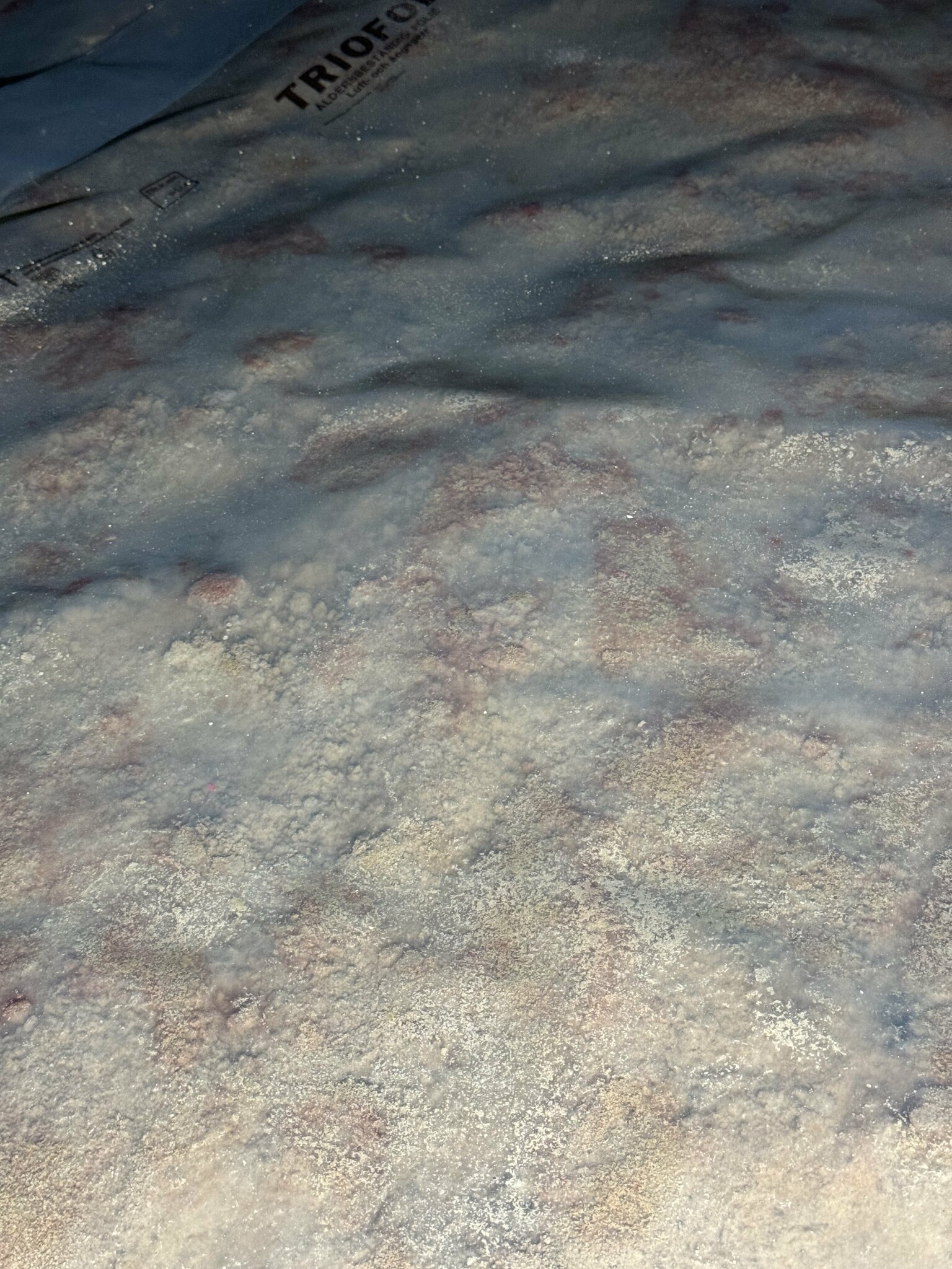 Hur som helst så tog jag mig ner och tittade och ser massa rödmögel(?) under plasten.