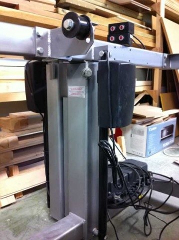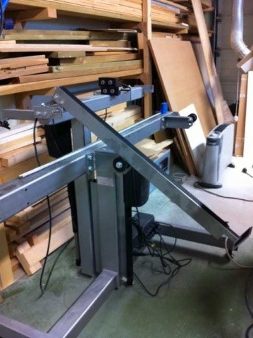 På sista bilden är även ena skenan där bordsskivan fästs i monterad. Den ena motorn ställer höjden på hela bordet (dvs hela infästningen inkl fästet för den andra motorn) och den andra lutningen (dvs höjdskillnaden mellan de två motorerna, typ).