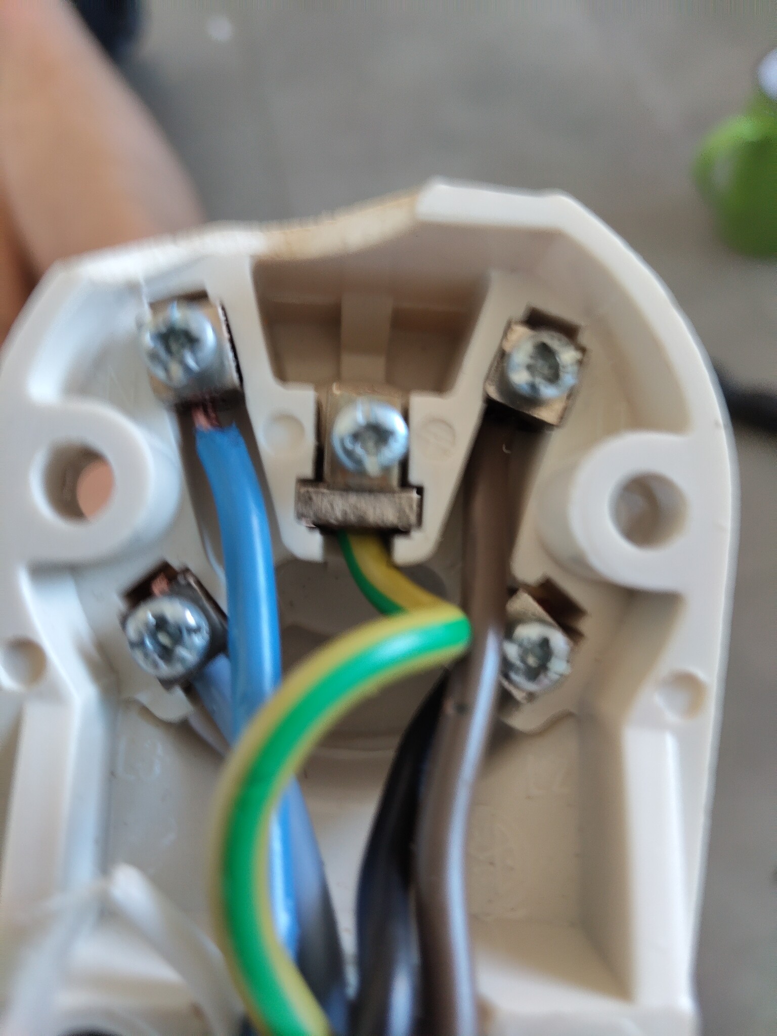 Har kollat runt hela hällen finns inget sen i boken säger den inte mycket om detta. Ser ju ifrån uttaget att nolla och fas vänster respektive höger, undrar varför kontakten är kopplad annorlunda