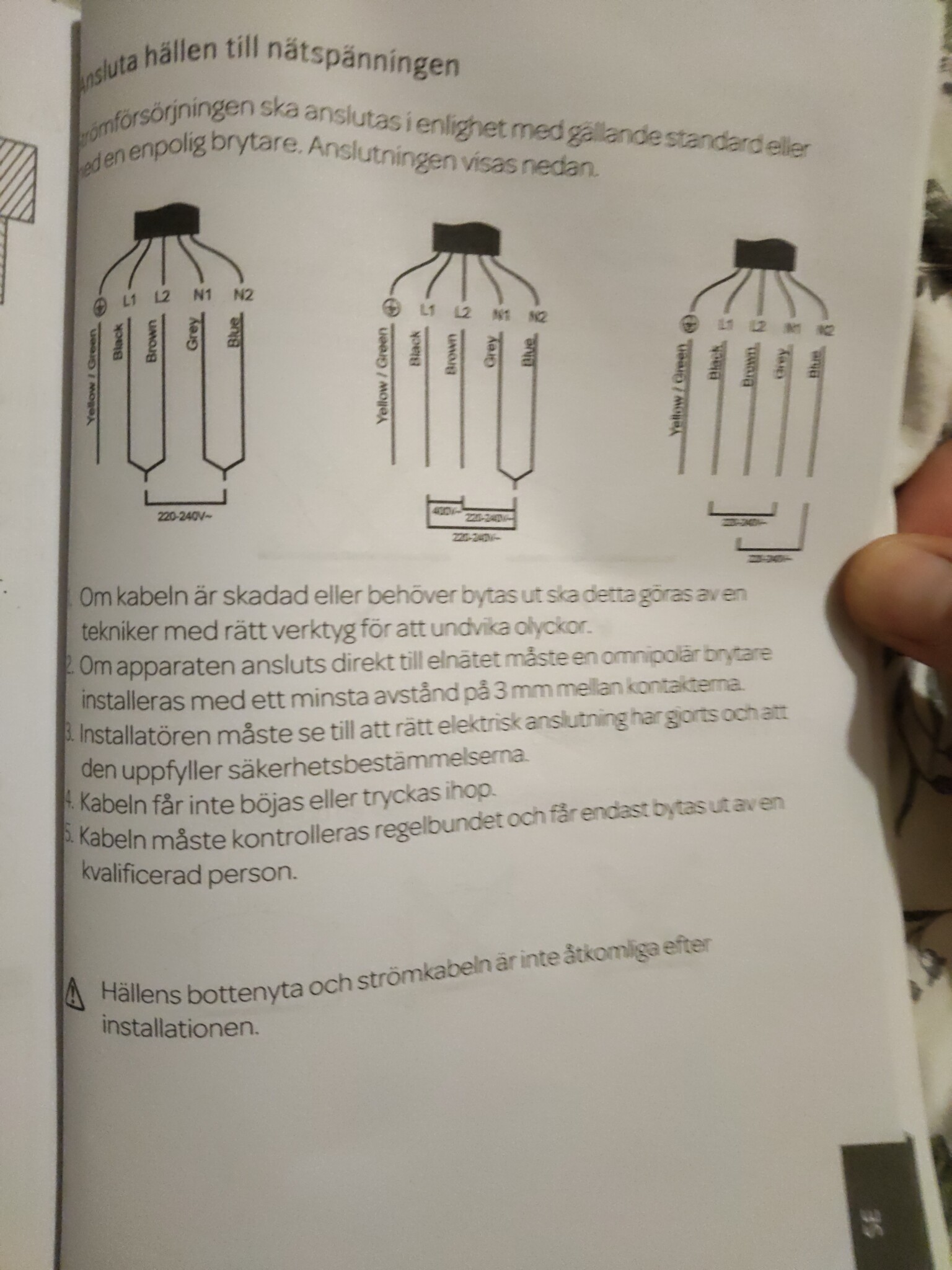 Jag hänger inte med riktigt men du måste ha en inkopplingsanvisning för plinten i hällen, det går inte att gissa för då "släpper man ut röken", som man brukar kalla det.Hampus Andersson9 skrev: