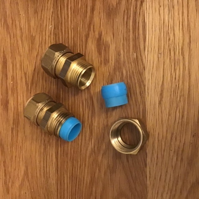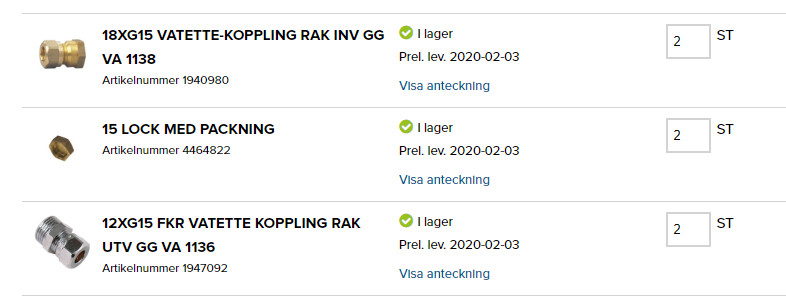 Har ett järnrör 3/8 ca 17mm till ett element, tänkte plugga det med en kulventil medans jag bygger om så har köpt dessa delar: