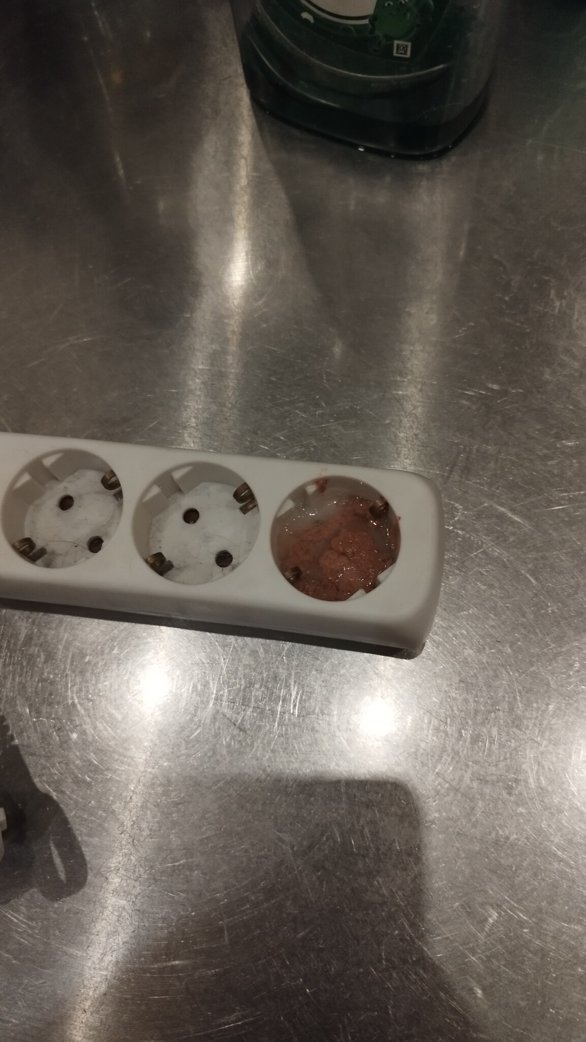 En av katterna har alltså spytt rakt in i, och fyllt en av uttagsbrunnarna utan nämnvärt spill. (Bilden tagen på diskbänk inför rensköljning.)