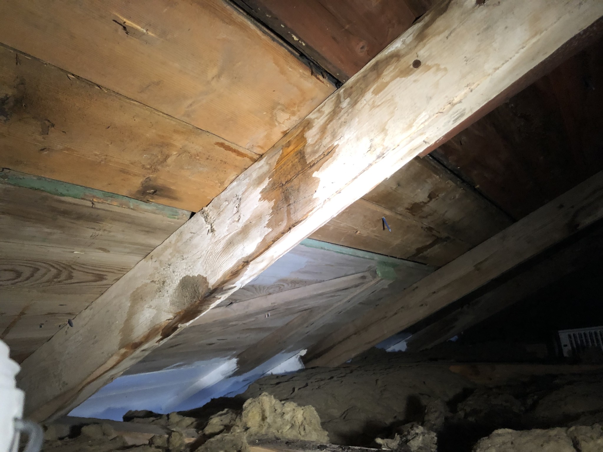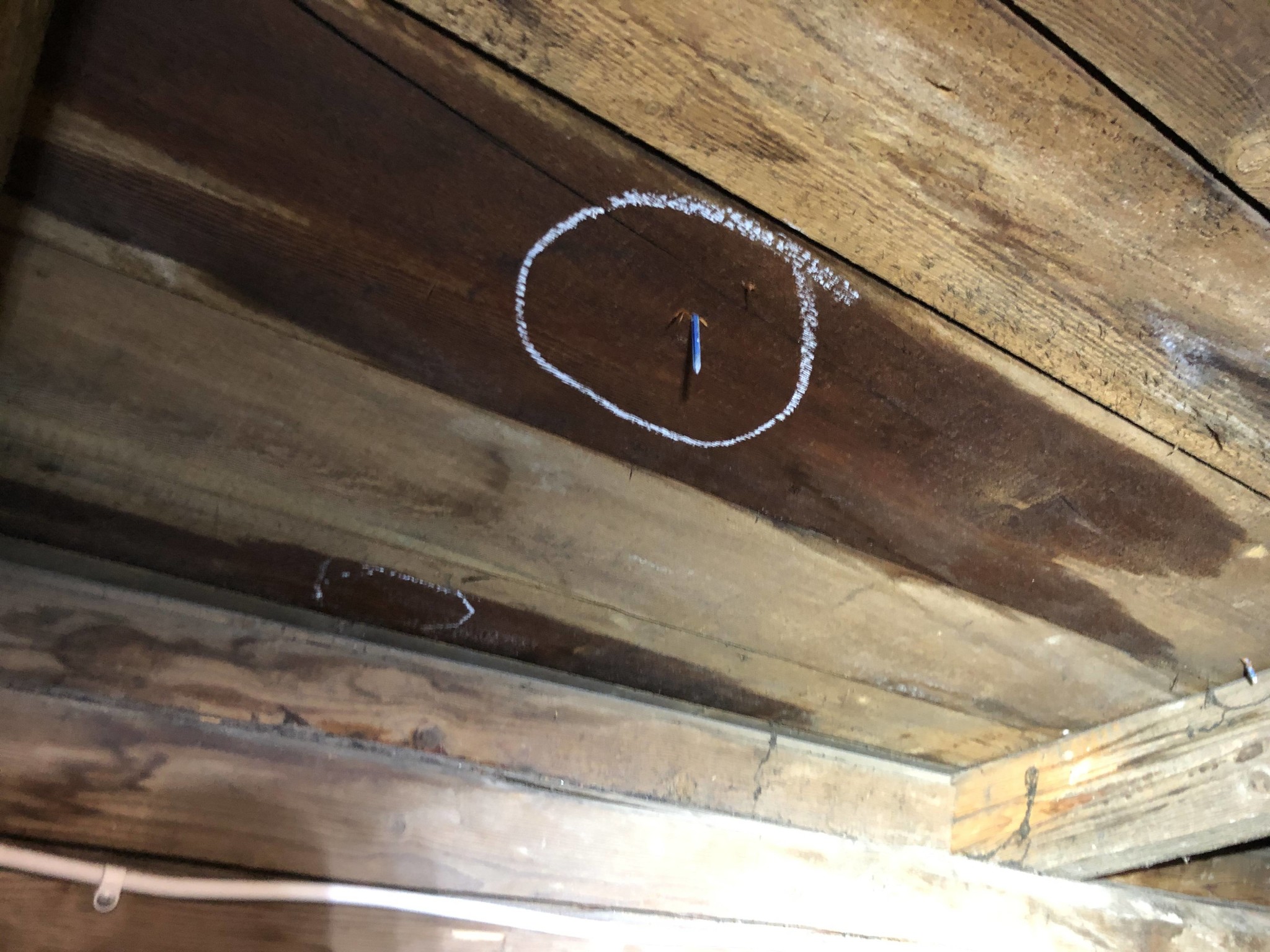 Sista bilden sitter klammer genom alla lager och så får de inte va men där verkar det inte läcka, dessa klammror finns på fler ställen men det är nog spikarna som läker mest.