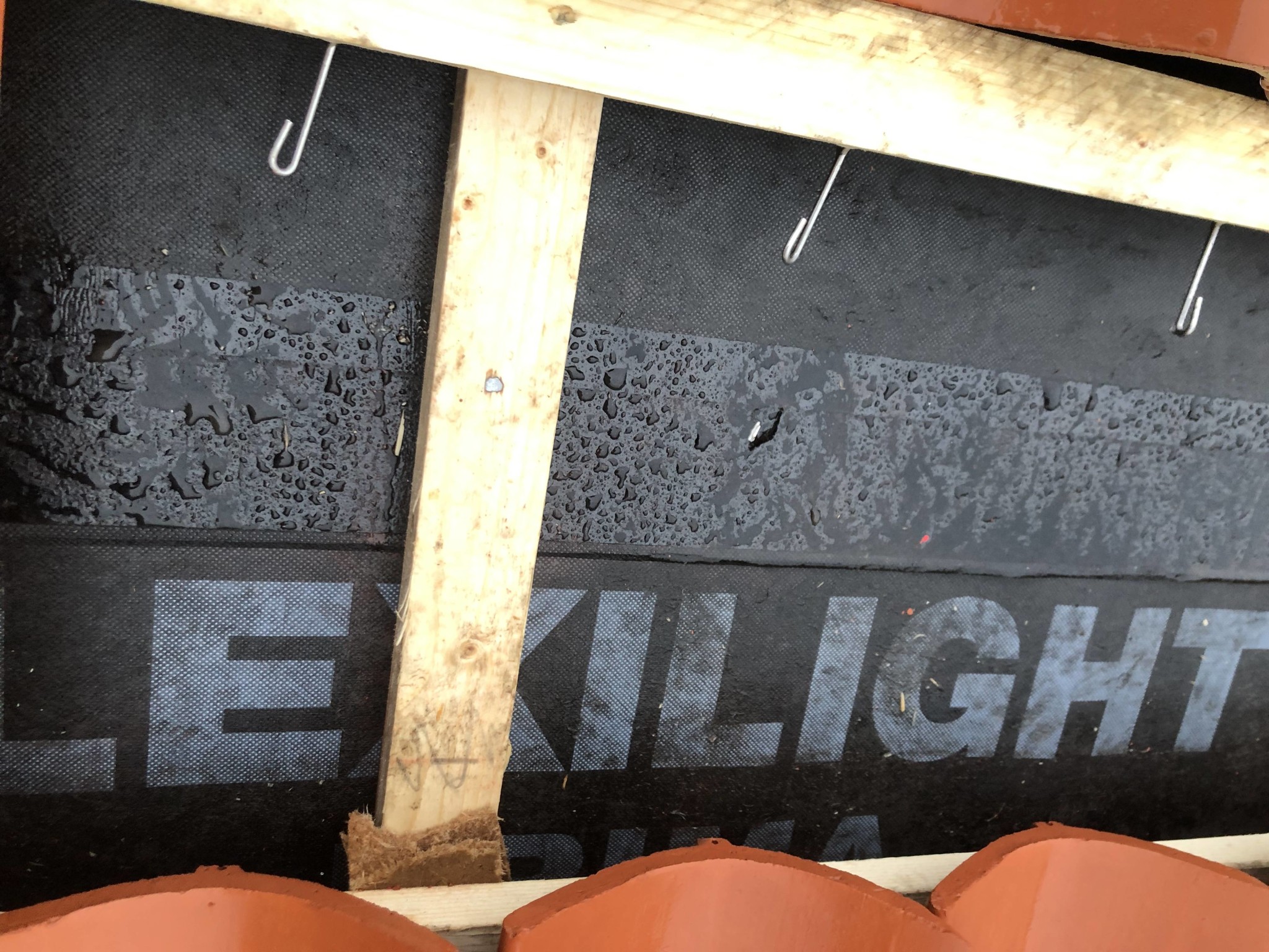 Vi håller på och renoverar taket, hantverkarna har använt en papp som heter flexilight prima pannorna är vittinge enkupit tegel och är lagt till sista raden då detta ska läggas i samband med nock. Det har idag regnat och det kommer in vatten på vinden, hantverkaren har pratat med säljaren på bygghandeln som säger att det är fullt normalt att det regnar in rakt igenom pappen! När inte pannor, nockband och plåtbeslag sitter på. det läcker både där det sitter spikar och där det inte gör det, på de värsta ställena blir det pölar under läckorna. Enligt specen för pappen ska den kunna ligga 2 månader utan pannor, våran har legat 2 dagar