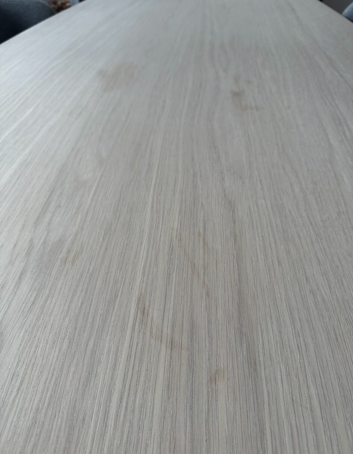 Har köpt ett köksbord i vitpigmenterat ekfaner. Underhållet är att olja det. Kan man lacka det istället? (fläckar efter vin/mat och bordstabletter)☹️ Se bilder!