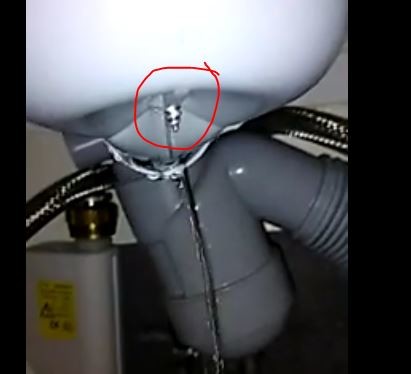 Ska vi gissa att säljaren rengjorde rören vid avflytt, slarvade bort VVS-skruven och fick den briljanta idén att dra en träskruv från handfatet rakt igenom rören?