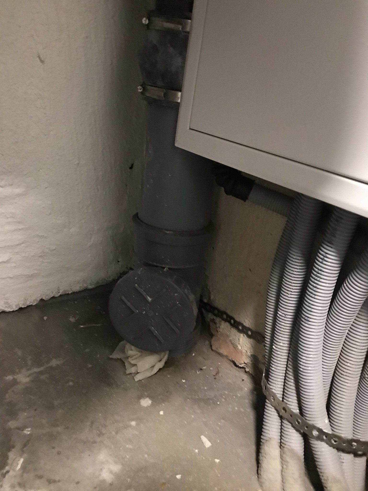 Idag upptäckte jag läckage precis under rensluckan/muffen. Alltså inget ymnigt flöde men helt klart fuktigt under på plattan. Ingen doft av avlopp (alltid något). Ev lite rost i det blöta.