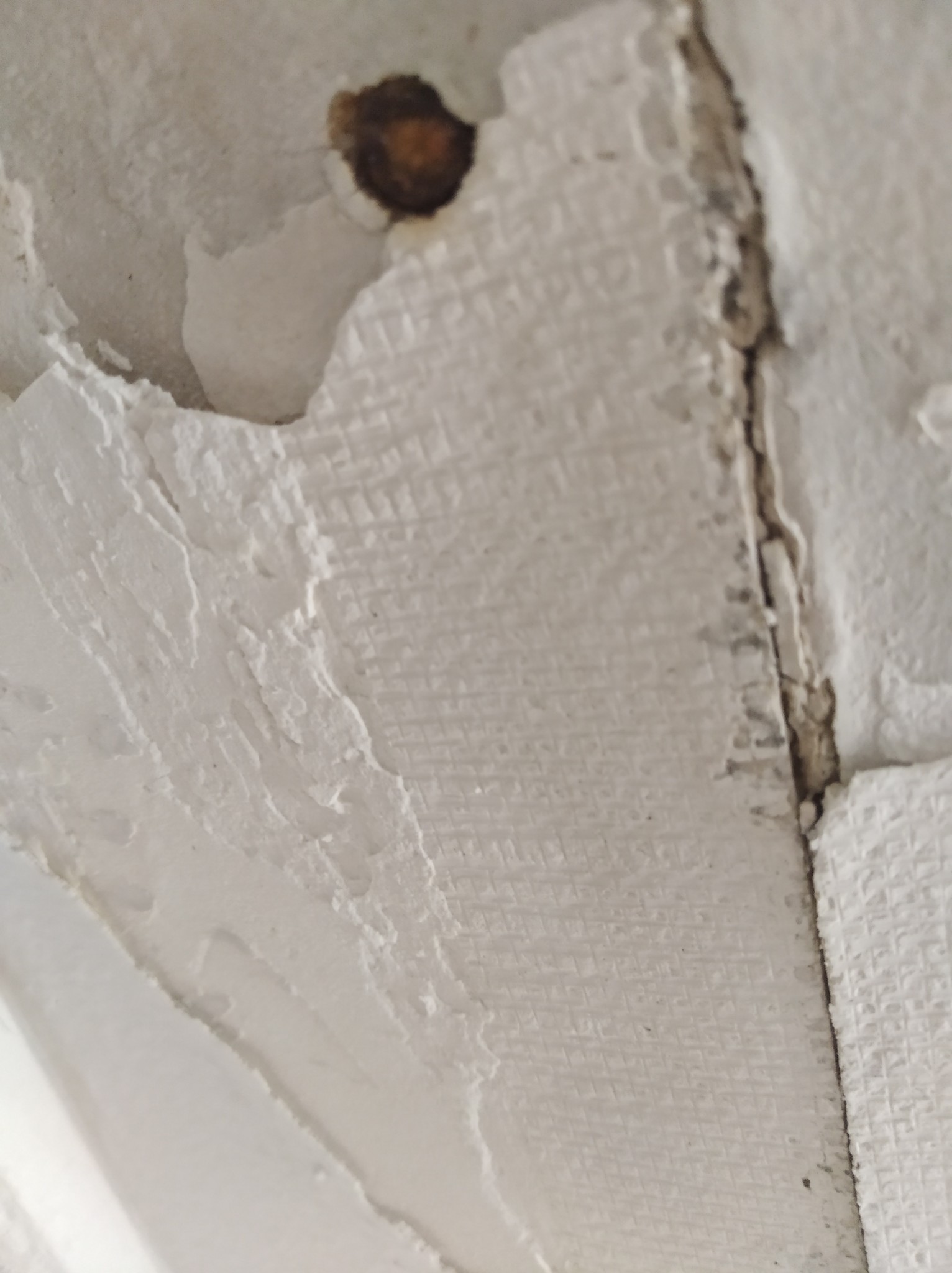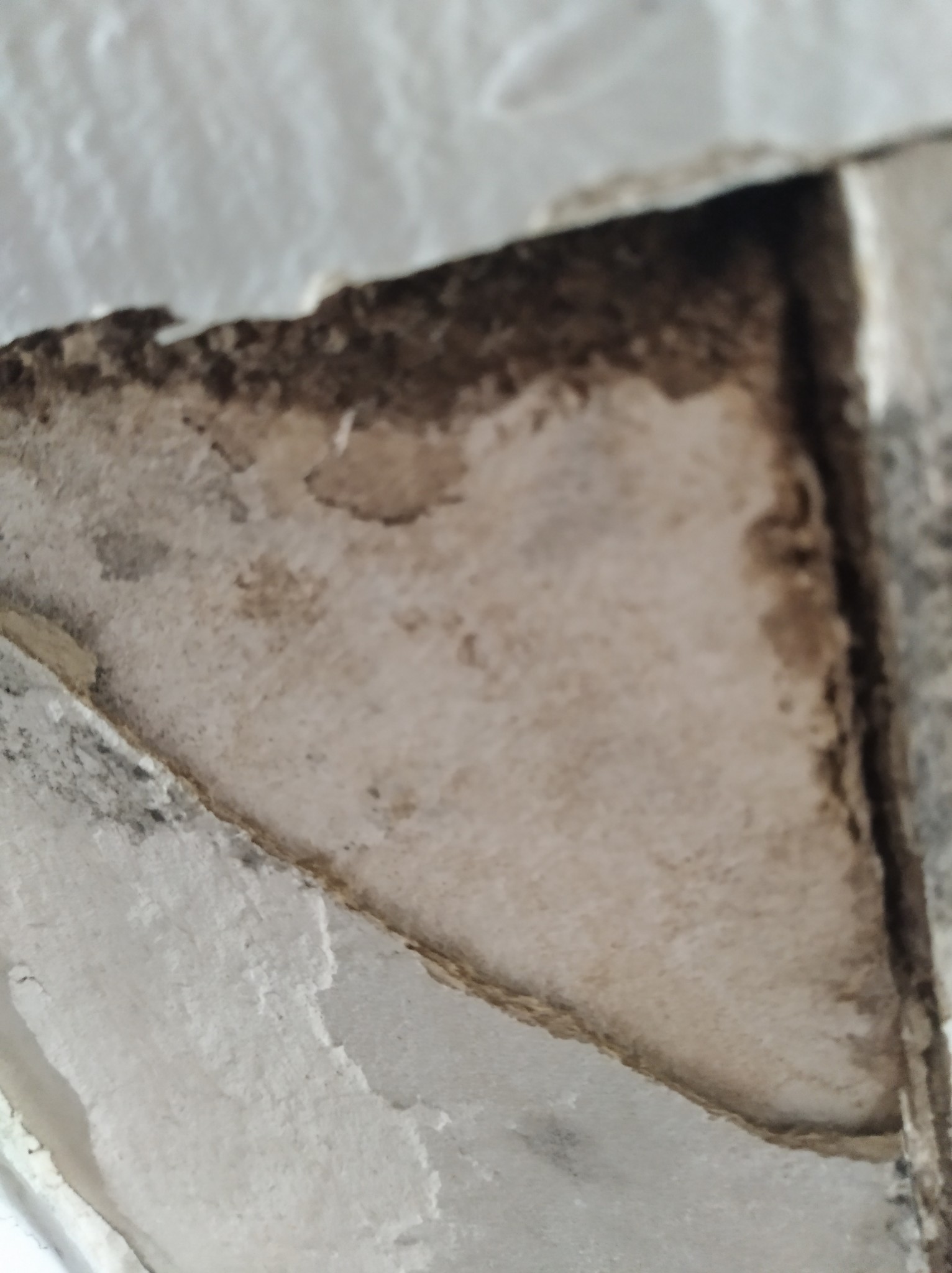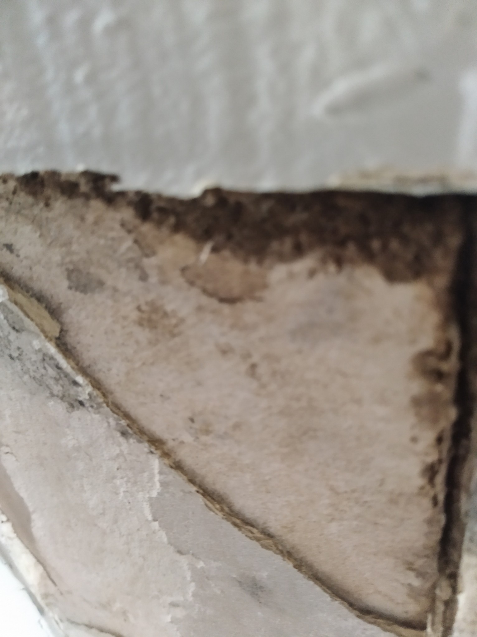 Vi har haft läckage / hål på ett yttertak (som är tätat numera) Som vid regn har i sin tur droppat ner genom till undertaket ner i skarven till lägenhetens innertak. Taket består av träskivor av nåt slag..