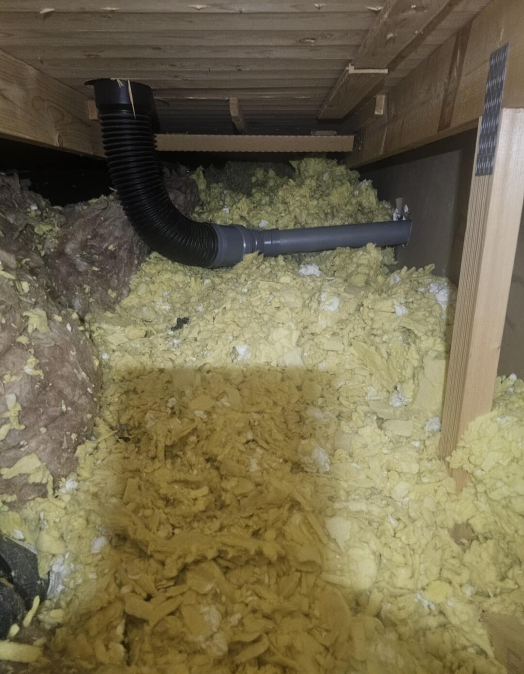 Det finns en Benders avluftare som är kopplat med några "adaptrar" mot VERTIKAL placerat 70mm rör mot avloppet i köket. Det ser ut att det är fel på fallet!