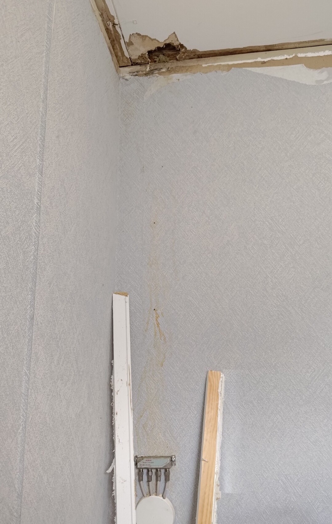 Har upptäckt fuktskador i taket i skafferiet. Måste ha runnit där sen huset byggdes.
