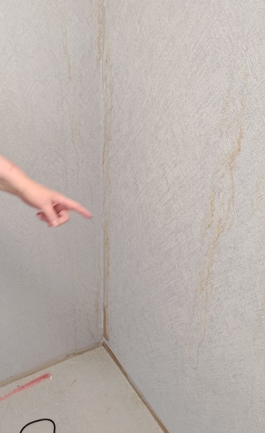 Gipset u skafferiet är helt skört. Kan smulas mellan fingrarna.