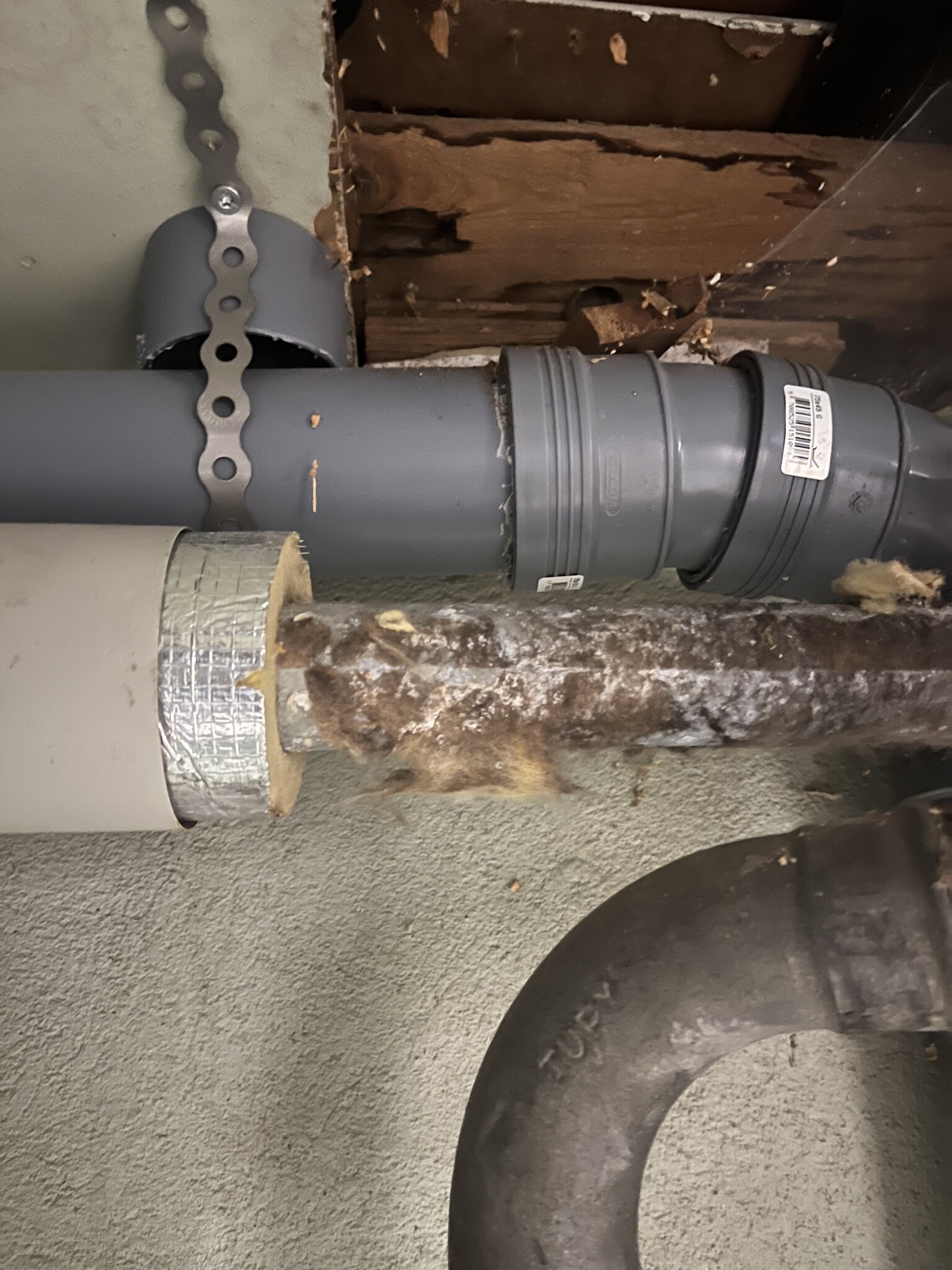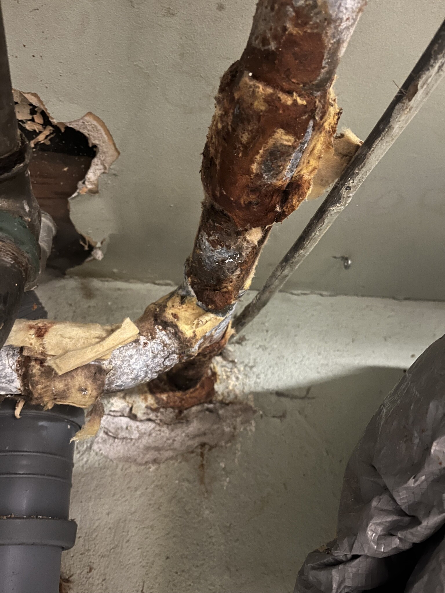 Min fråga är lite om någon har varit med om liknande? Känns spontant konstigt att de bara byter 50 % av rören men lämnar resterande obesiktigade? Det är ju ca 70 år gammalt och om vissa delar ser ut som nedan under isoleringen kan man väl misstänka att även övrigt rör ser förjävligt ut? Dessutom om de läcker bör det väl betalas av SVOA vid tex fuktskada?