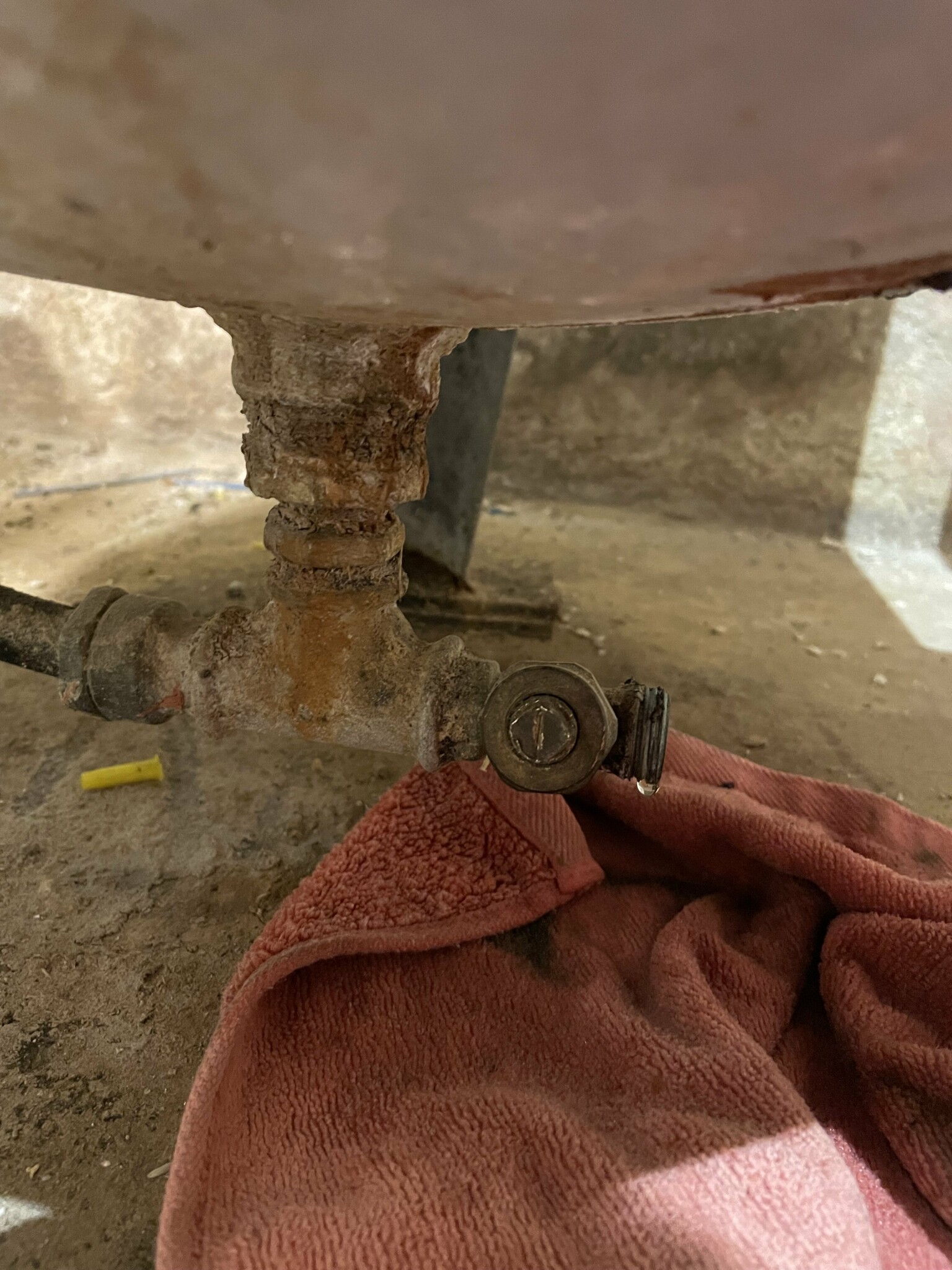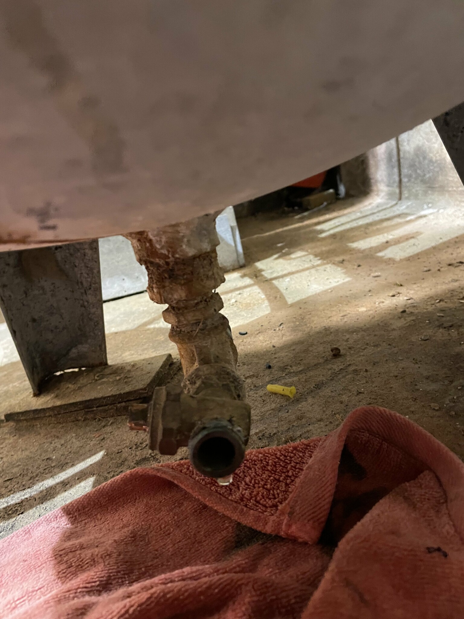 Justerade nyligen trycket i vår hydrofor och lämnades då med en ventil som läcker. Ventilen sitter under hela hydroforen och det är då den högra delen som börjat läcka. Som ni ser så sitter ju ventilen på underdelen av hydroforen som minst sagt börjat bli gammal. Är lite orolig för att om jag försöker ta av nuvarande ventil så är det fler saker som kan börja läcka då detta är ju delen som släpper ut allt vatten i tanken. Någon som har några bra tips här?