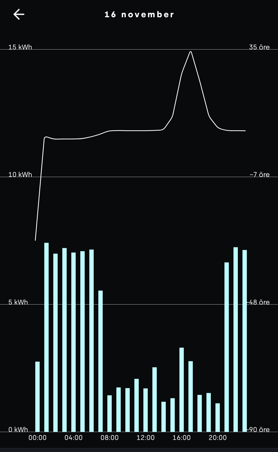 Elbolagen har ibland ett behov av att bli av med ström. Tibber betalar sina kunder för att flexibelt kunna styra deras laster när ett behov finns att göra av med ström pga av låg efterförfrågan eller pausa laddning när efterfrågan är för hög i elnätet.D Dloc skrev:Vad menar du med att ni får betalt för att ladda bilen, även Tibber tar väl betalt för förbrukad el? Syftar det på Grid Rewards?