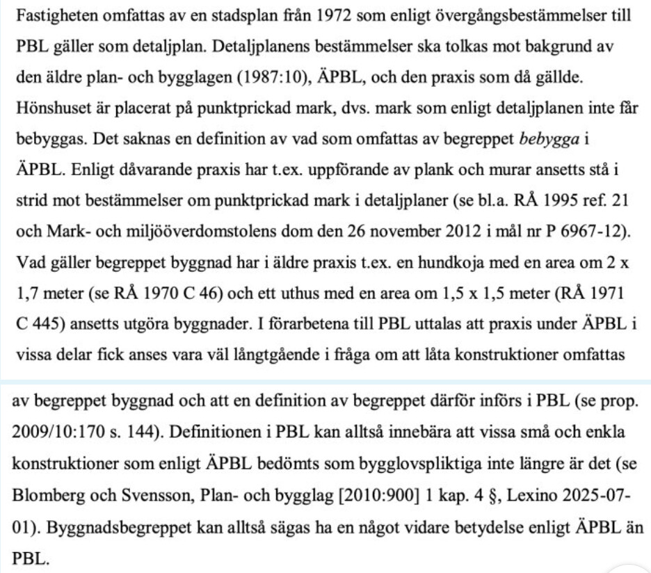 Jämför vad MÖD skriver i sina domskäl i granntråden om hönshuset: