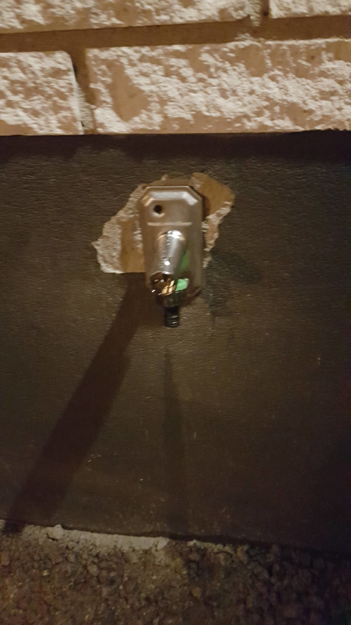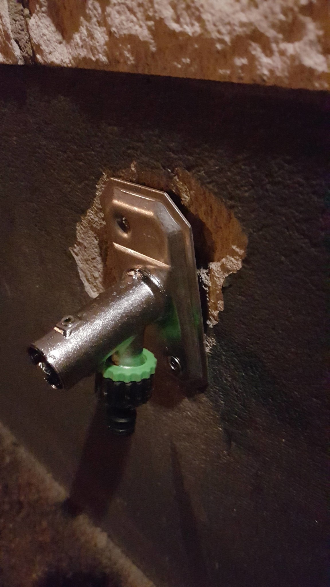 Borrade ett hål för vattenutkastare från källaren och ut genom grunden. När jag var igenom och gick ut för att inspektera hålet på utsidan såg jag att det var en krater på ca: 10x10cm och runt 1cm djup istället för ett fint runt hål på 18-20mm. Den sista biten hade alltså slagits bort.