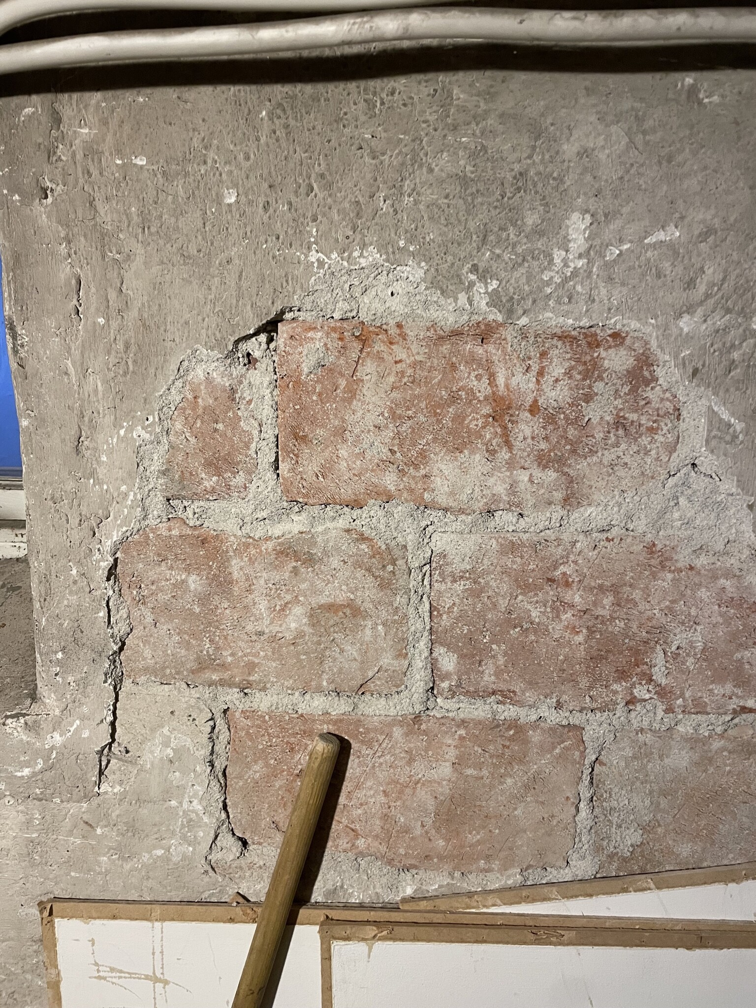 Så min plan är att knacka ner tillräckligt för att få bort eventuellt tät färg och sen laga dem med, ja vadå, innan jag putsar med något kalkbruk, men det är en senare fråga.