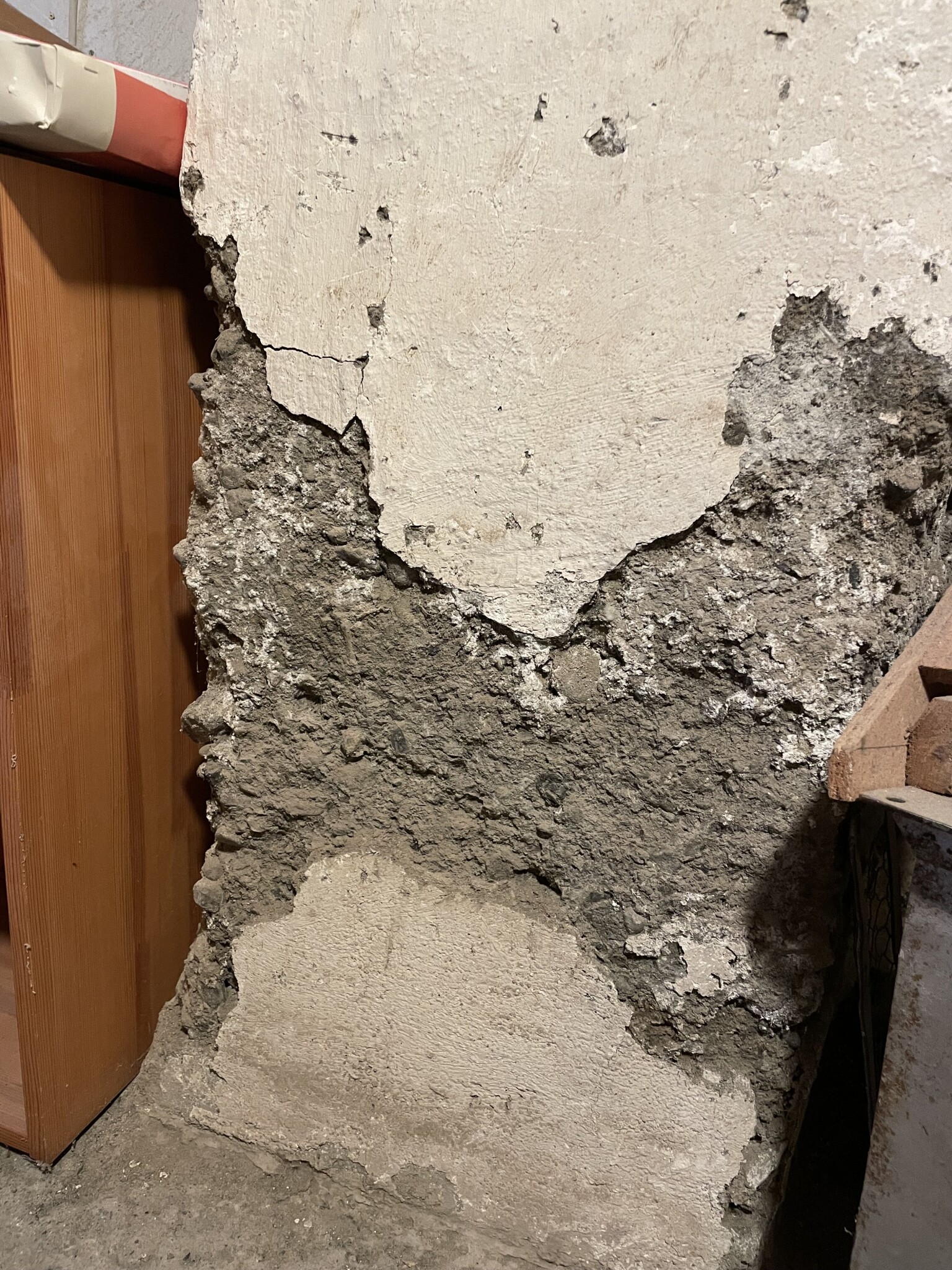 Huset är från 1922 och innerväggarna i källaren är riktigt risiga.