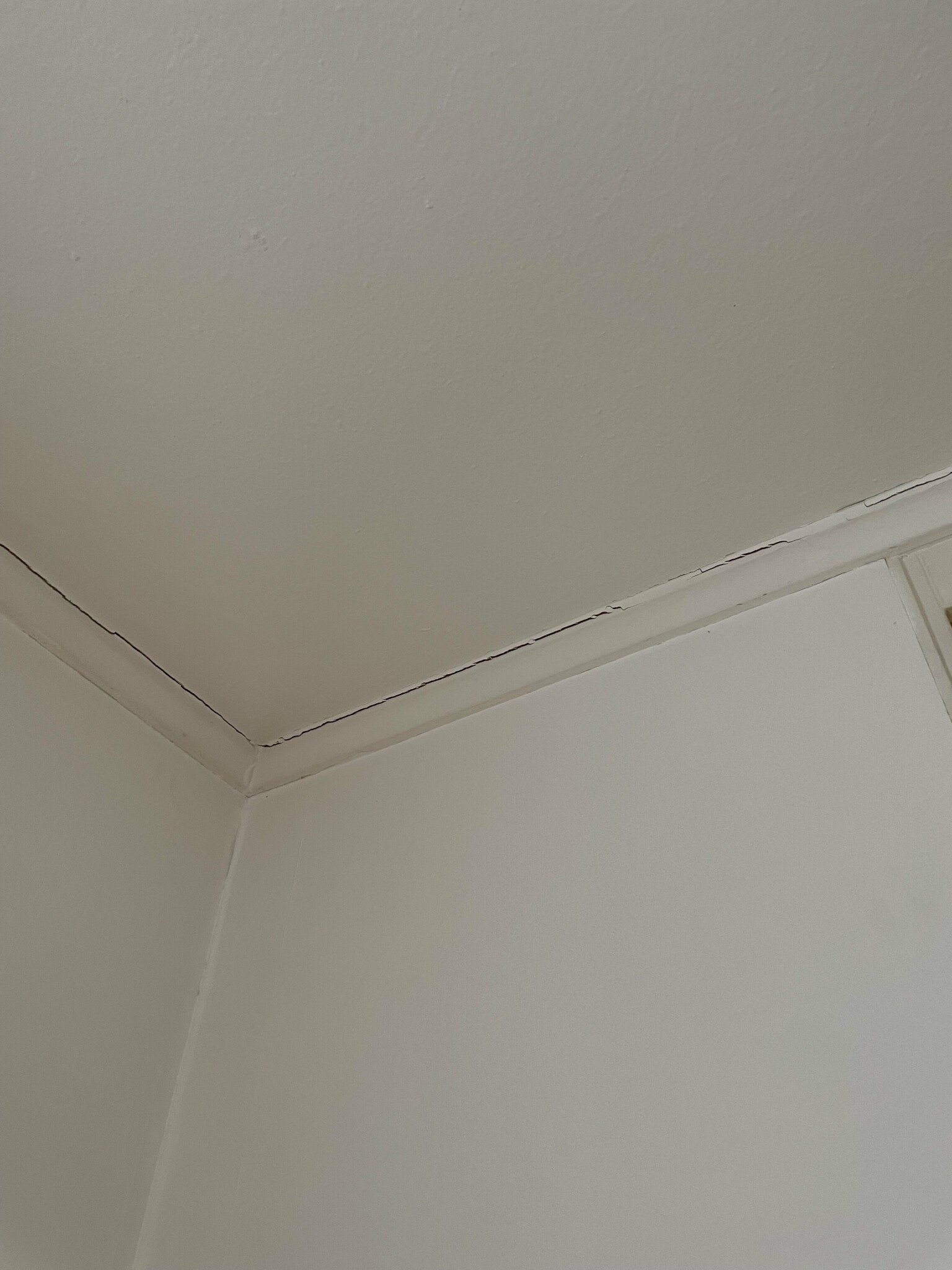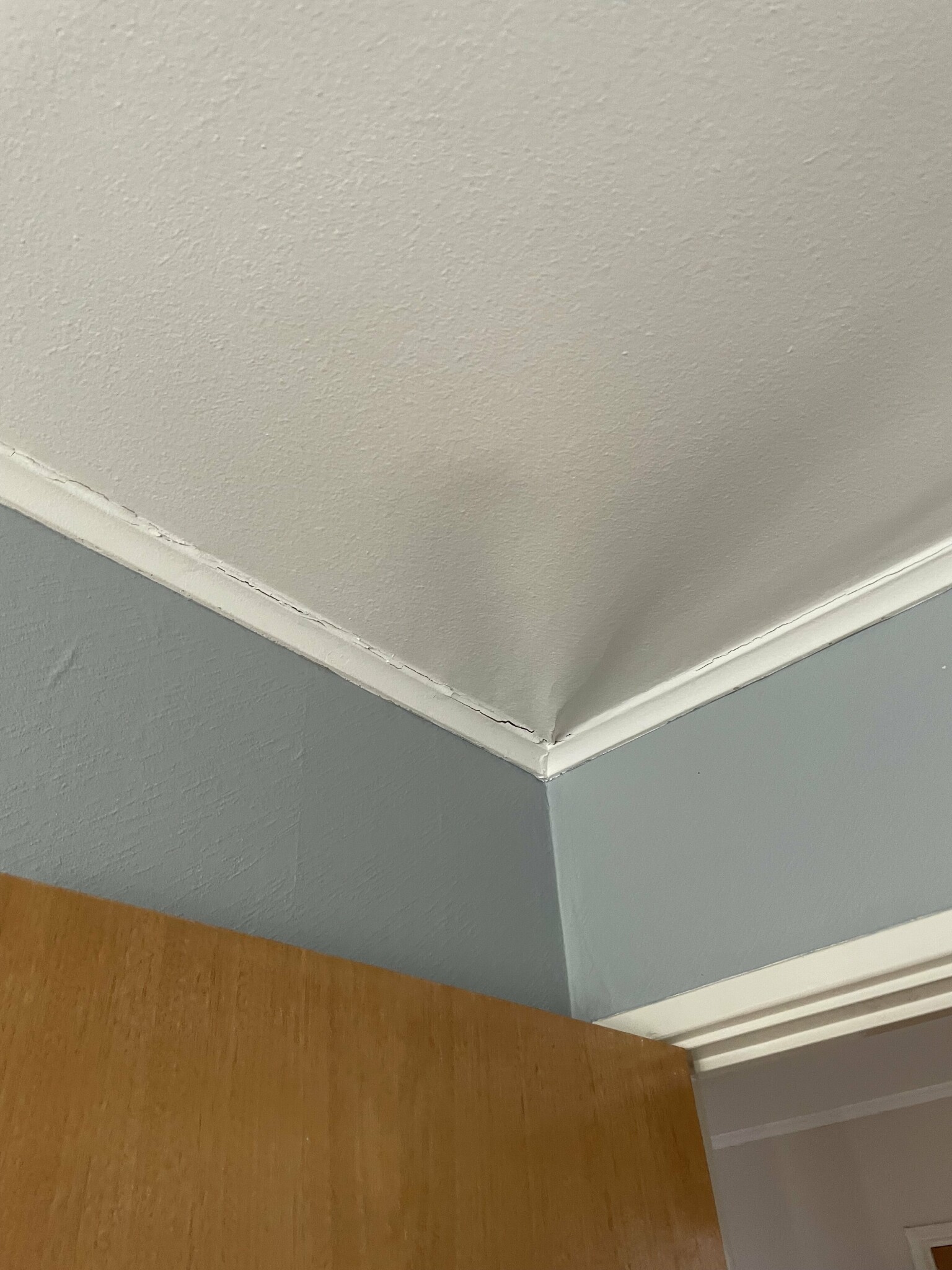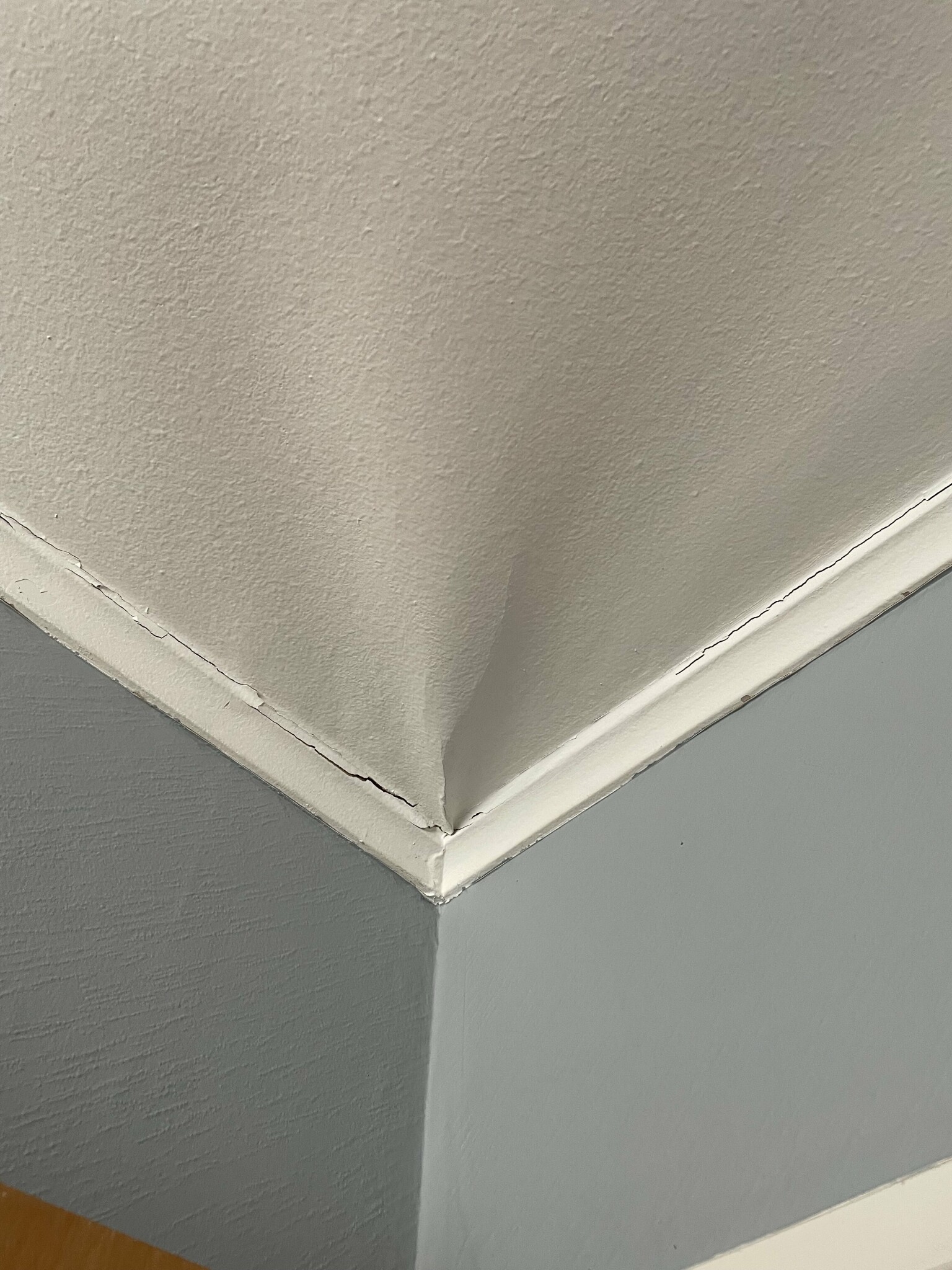 Hej! Har precis flyttat in i ett hus från -61 och i flera rum är det spännpapps tak. I ett av rummen har det det börjat hänga i ena hörnen och börjat släppa i listerna. Går det att måla på dessa tak? Hur hade ni gjort för att få detta att se bättre ut?