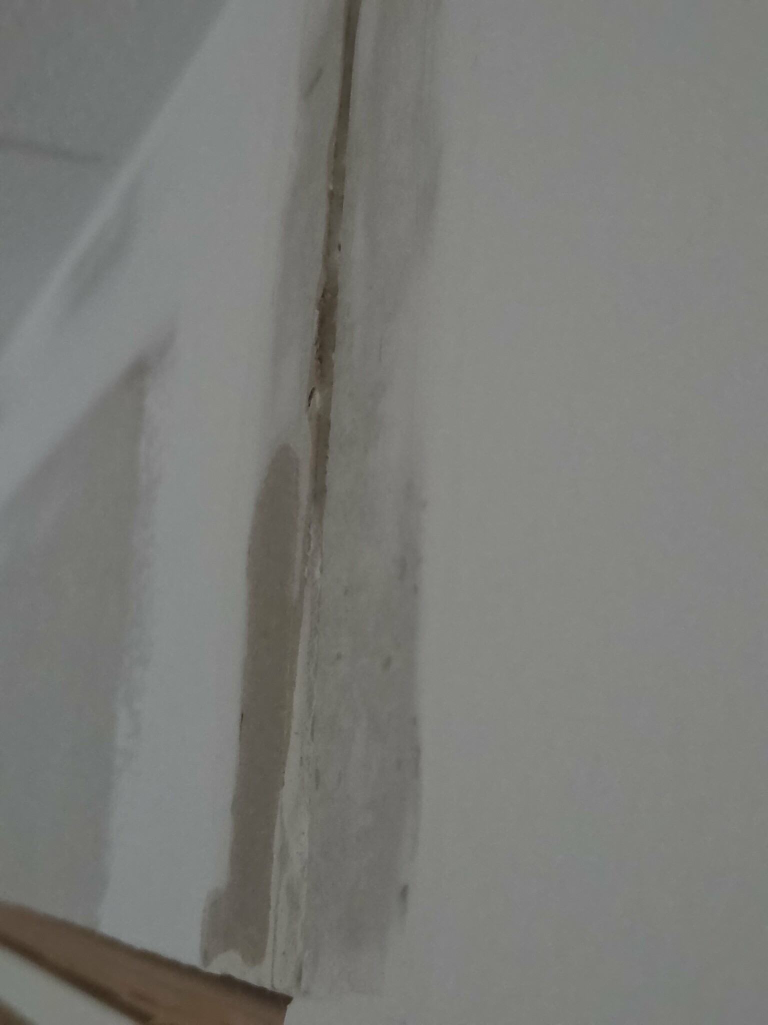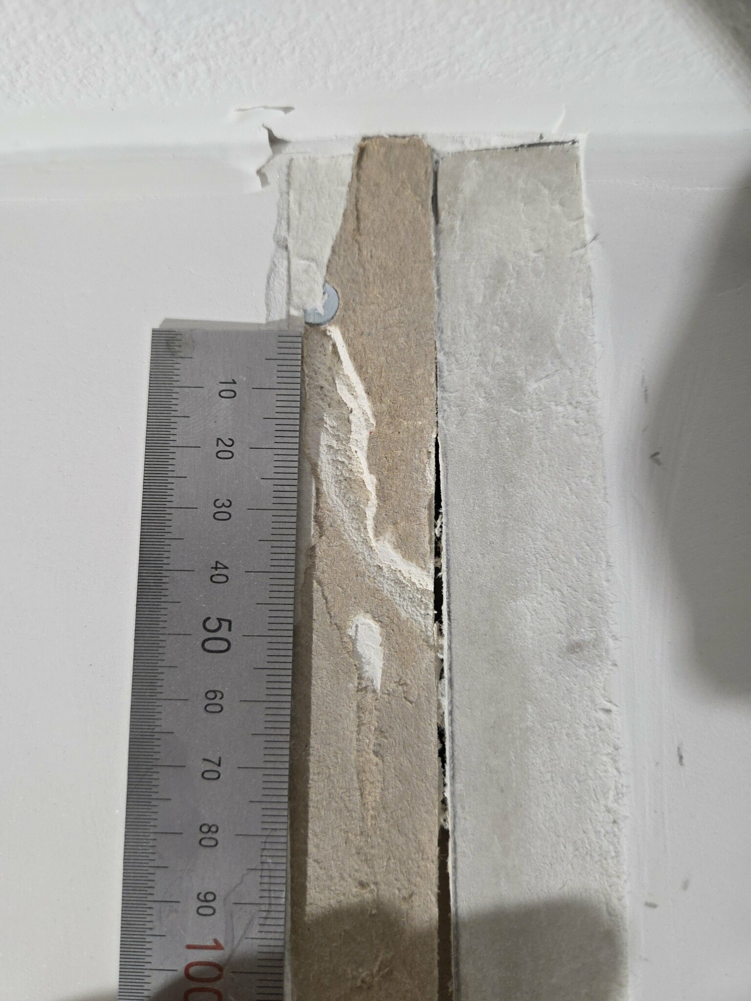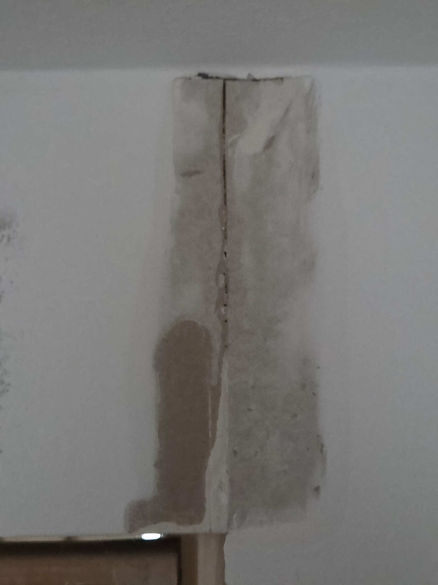 Går det laga på något sätt eller måste vi byta ut hela gipsskivan? Den här delen sitter ovanför dörren och andra skarven är fastgipsad med en aquabead hörnprofil.