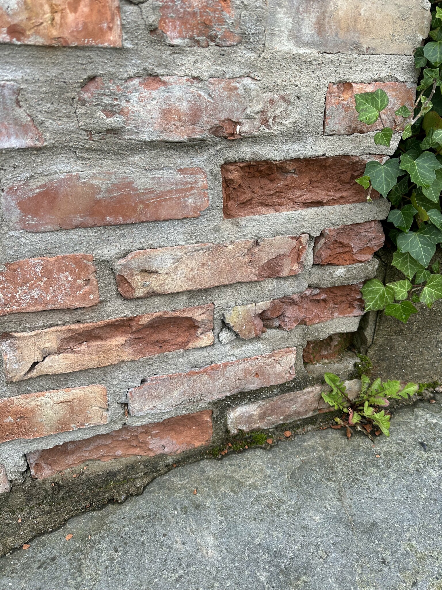 Är nu flera tegelstenar som håller på att spricka och bitar trillar bort.
