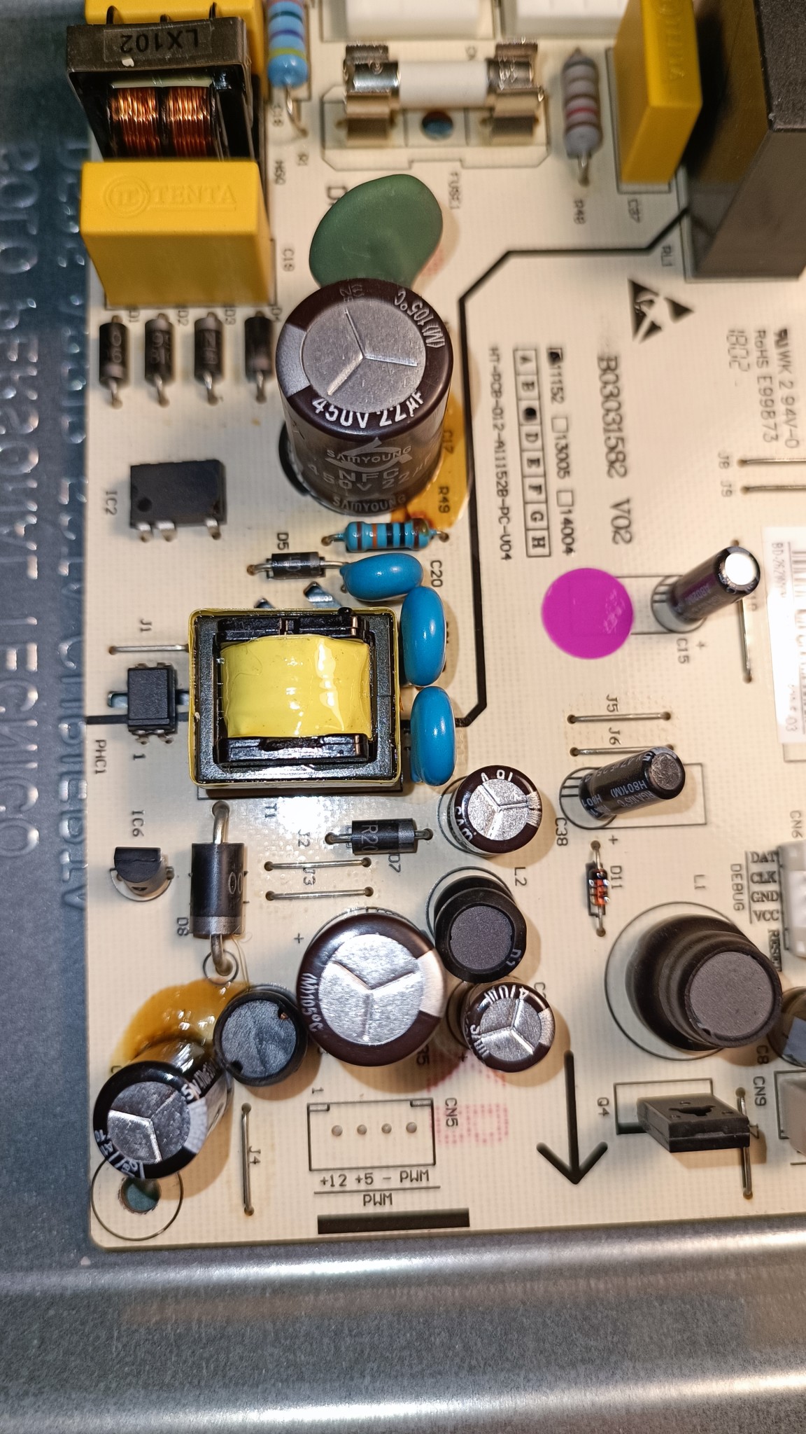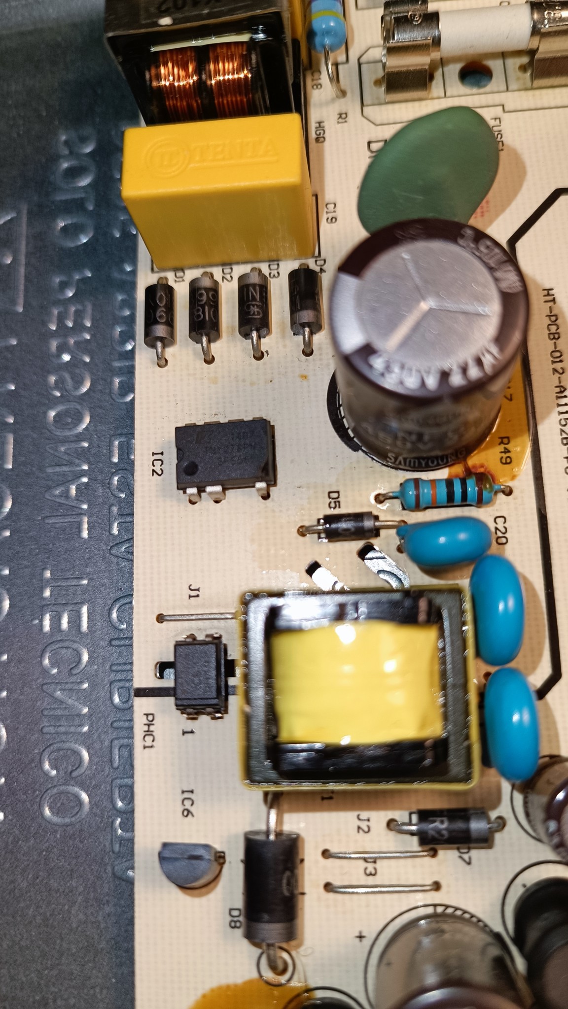 D5 verkar vara täckt i lite lim från kondensator bredvid, men ska kolla närmare på det.
