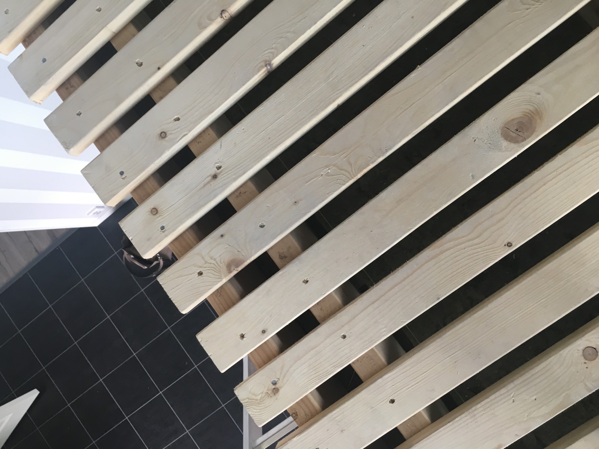 Vi har nyss flyttat in i vårt nybyggda hus och har valt oinredd övervåning. Husleverantören har lagt glesregel på övervåningen (för att snickarna skulle ha något att gå på när dom isolerade övervåningen).