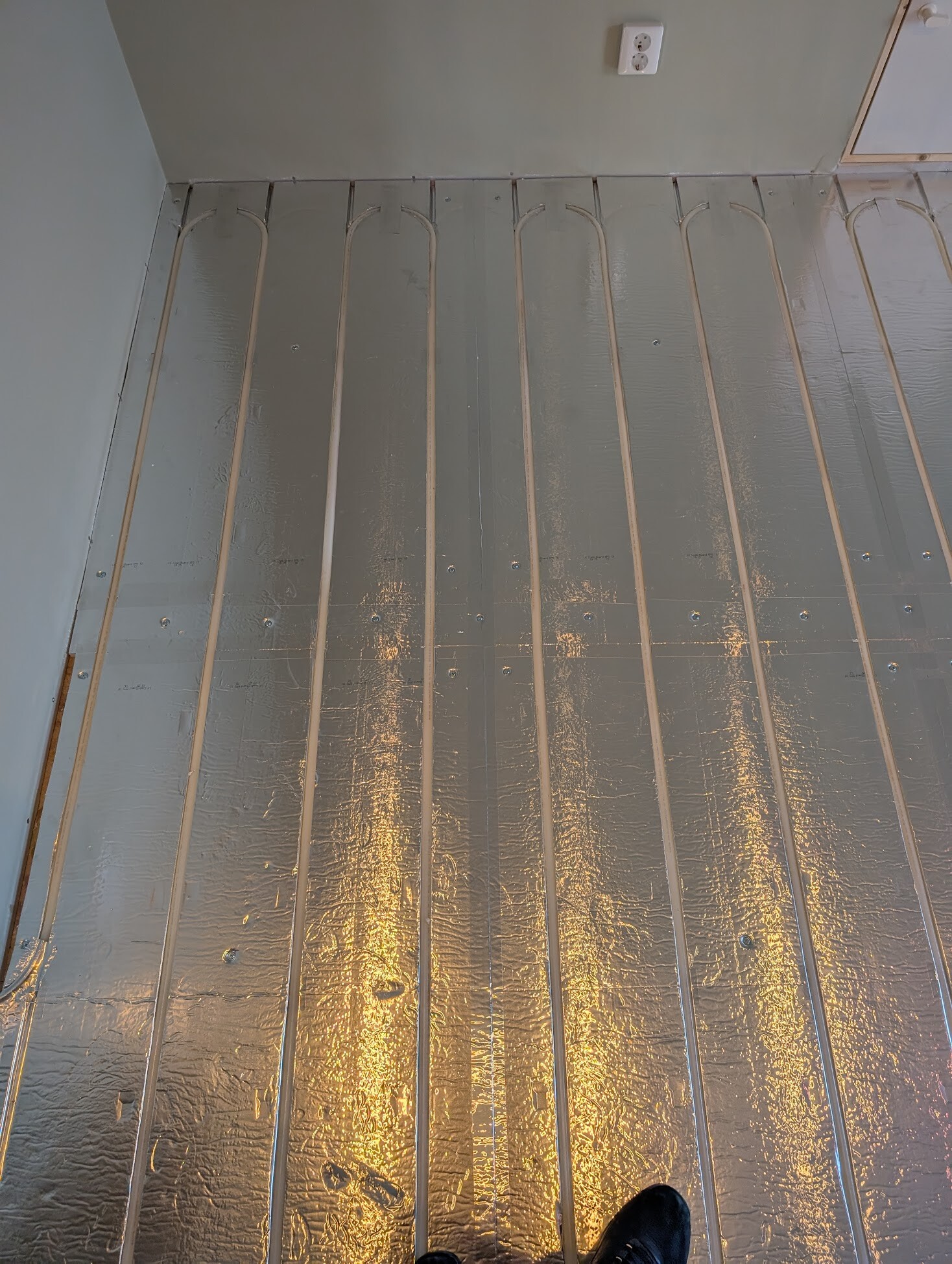 Lägga golvvärme i dubbelplåt träbjälklag