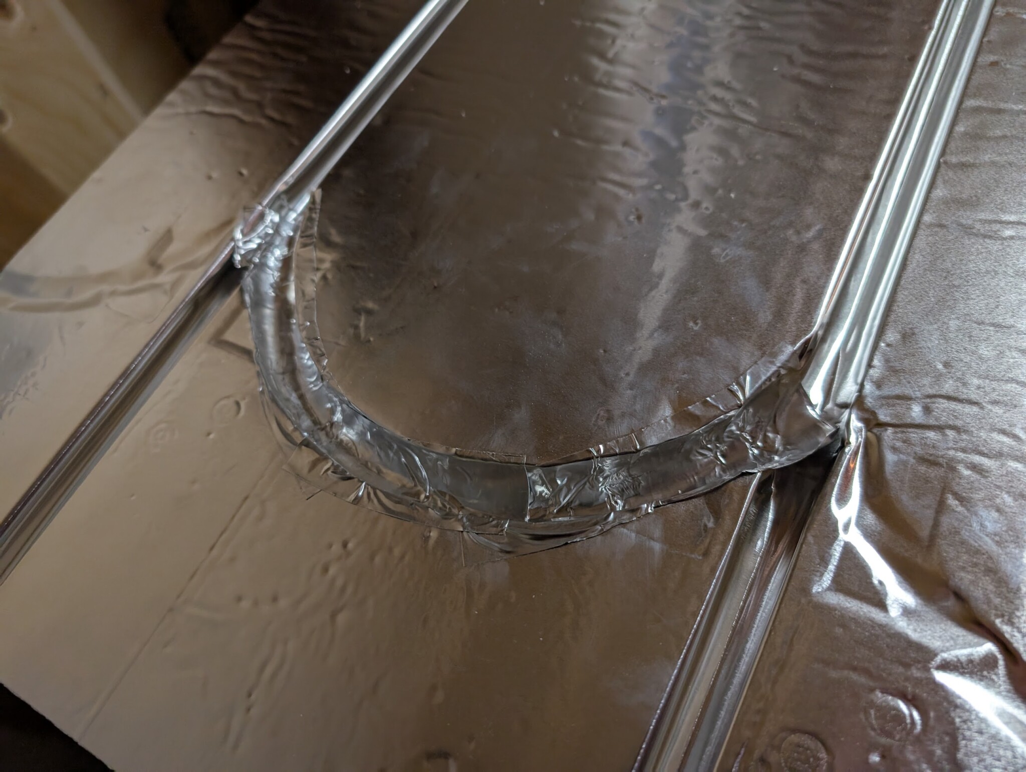 När man får skivorna så är dom dubbelvikta. LK rekommenderar att man tejpar alla skarvar och vändningar. Detta tar mer tid än man tror om man ska göra det riktigt. För i varje vändning måste du då knöla ned deras aluminiumtejp (jag köpte en på Amazon istället som är samma grej i princip, https://www.amazon.se/dp/B0842XKWB5)