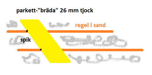 Jag har vid blandade ombyggnationer i mitt 50-talshus sparat fin parkett som legat fastspikat på reglar som varit flytande på ca 10 cm sand. (Se bild nedan)