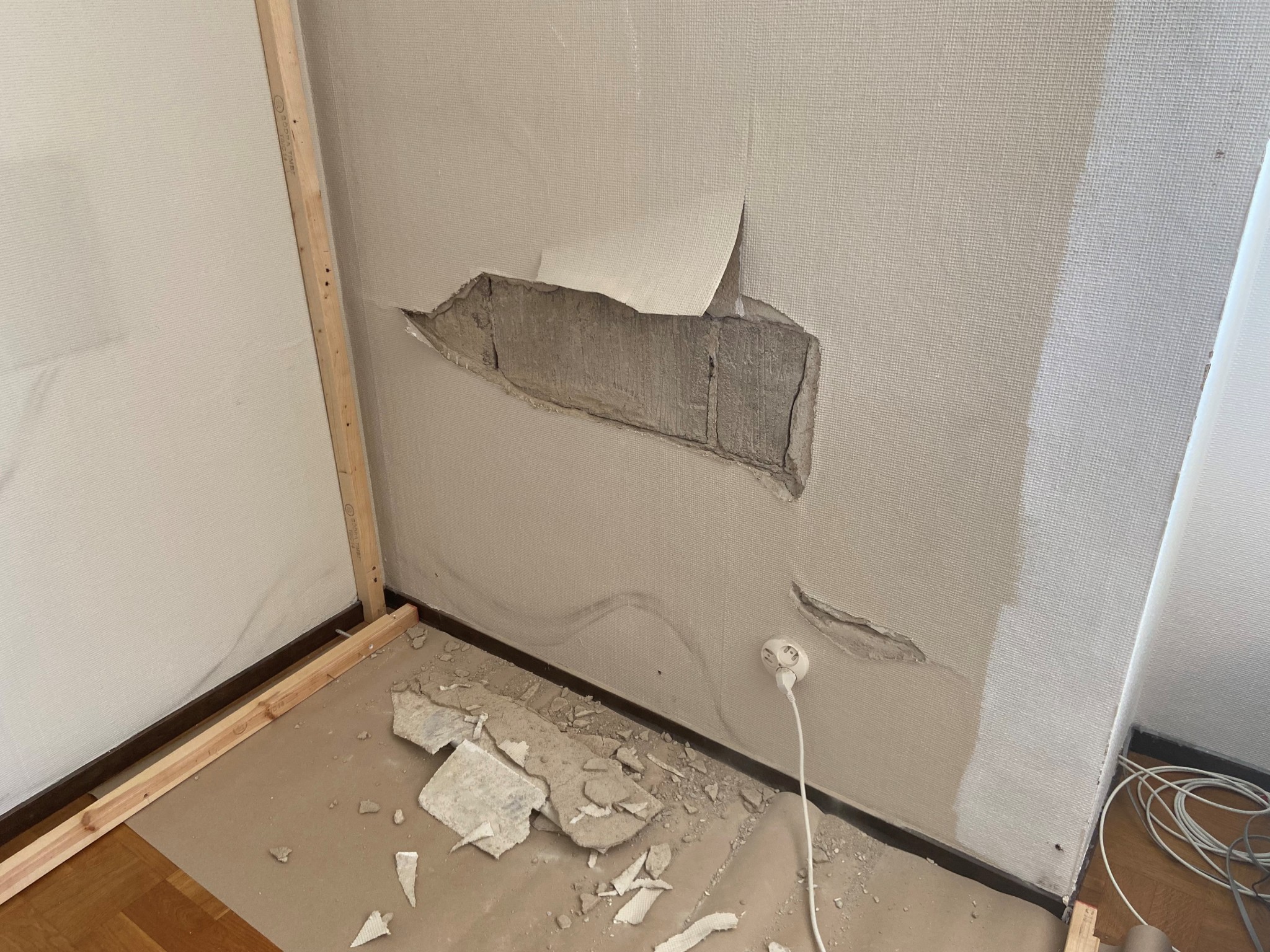 Jag är nyinflyttad i villa från slutet av 50-talet. Rev precis ner lite träpaneler i vardagsrummet för att komma år mina vanliga väggar och utforskade där lite lös puts bakom fiberglasväven. Har nu knackat bort allt det lösa och tänkte reparera väggen. Det är en yttervägg.