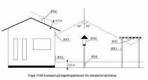 I torra utrymmen behövs inget skydd mot väta, där räcker normalt IP2X.