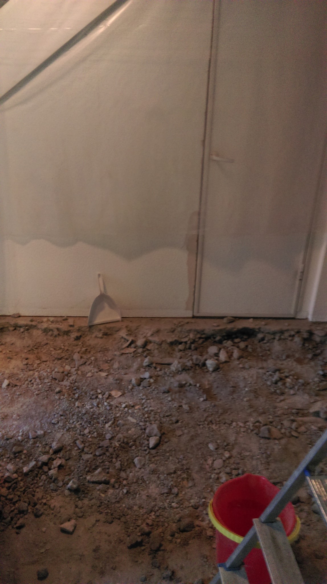 Vi skulle byta en del rör med och lägga vattenburen golvvärme så två dagars nötande med bilmaskinen till grannarnas stora glädje resulterade i detta. Här var det mentalt rätt jobbigt att se sitt hem. Vi bodde för övrigt inte hemma på åtta veckor.