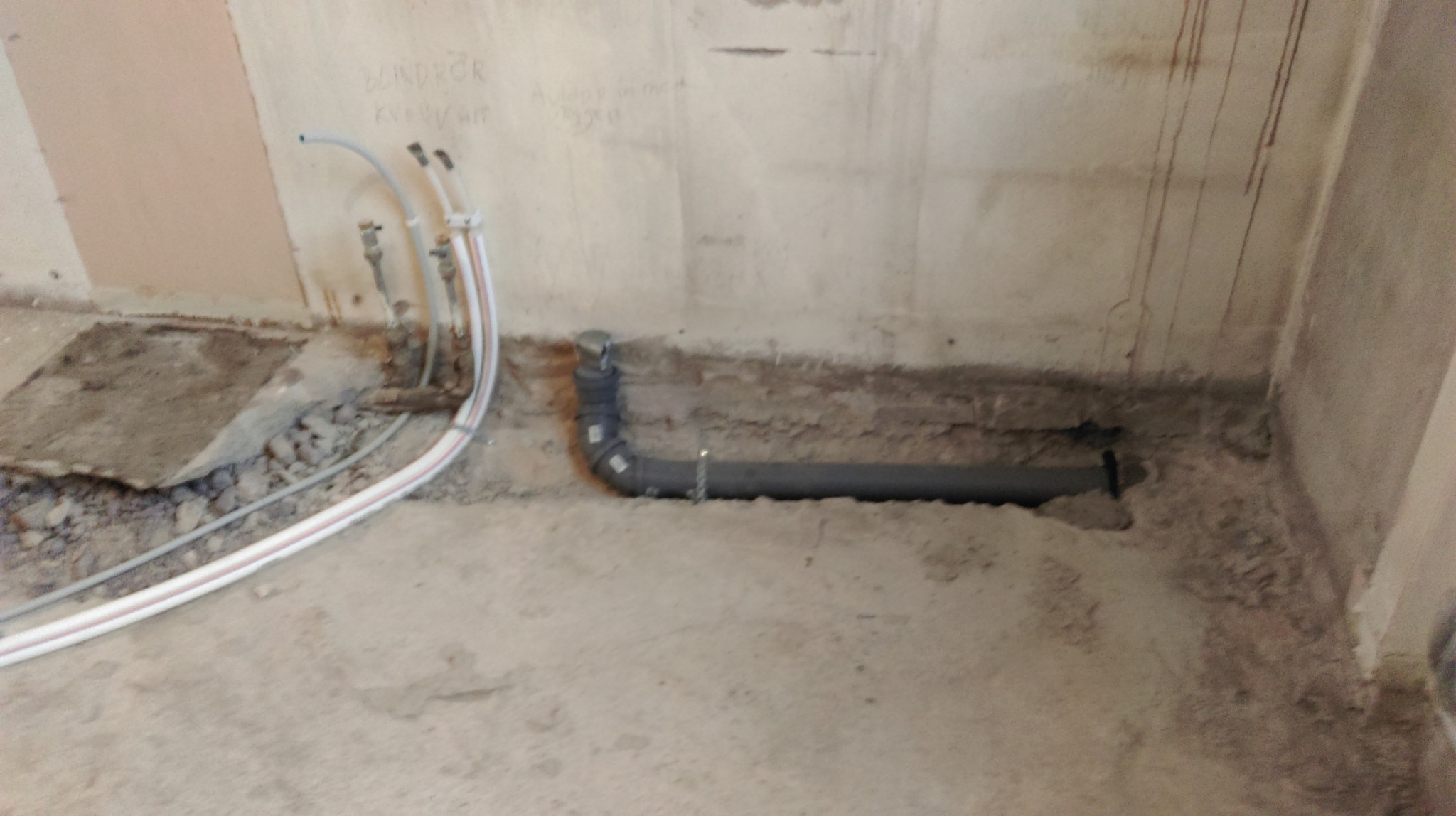 Rörmokarna har börjat med sitt. Den som ritade VVS i dessa hus på -50 talet måste har varit hög på något. Vatten in i köket kommer från grannens källare så de rören bytte vi inte men drog blindrör som finns redo om/när något händer med original rören. Därav också den sparade klacken av det gamla golvet.
