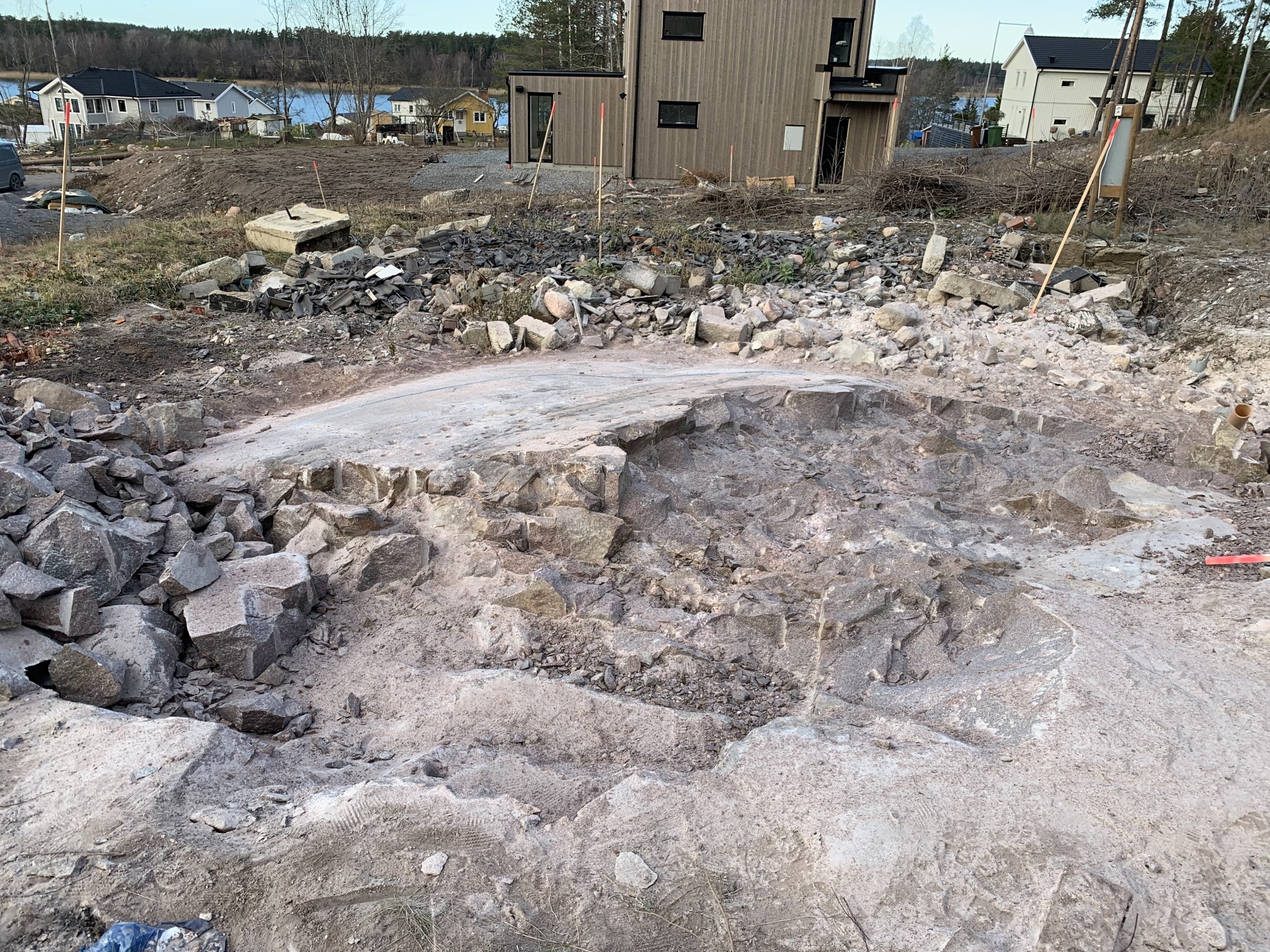 Vi har grävt mycket runt om och hittade inga slut. Vi tror i botten det finns ett slut som är fortfarande under mark.B Bällstabygget skrev:Dessa bilder är från vår spräckning av en liten häll. Vi gjorde ca 500 hål och som du ser i bilderna finns liksom en fri sida av berget, en kant som är mot luften. Berget behöver den för att kunna spricka. Vet inte hur man ska förklara det bättre. Men om du gräver ut runt ditt berg kanske du hittar en lämplig kant och kan borra närmre den så du påbörjar spräckningen där.