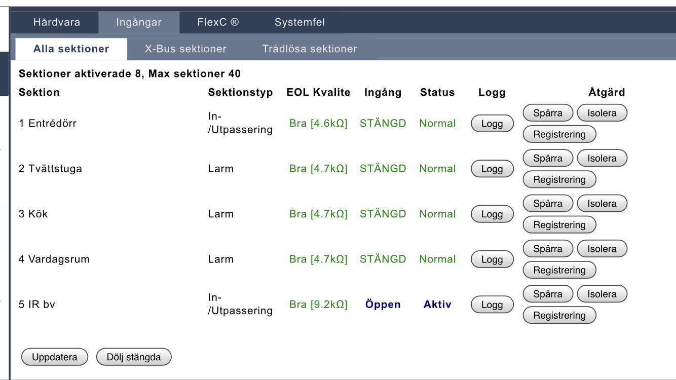 Vad säger gränssnittet på status om sektion 5?I ippo skrev:Sådär då är man igång, har bytt ca och map idag. Kopplat in dom mk’s jag vill ha och resten än nedplockat. Kvar är IR- och branddeckare.