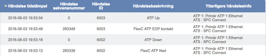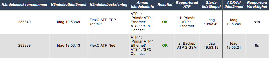 För övrigt genererar inte heller centralen något larm om primära ATPn går ner. Däremot genereras ett larm om Ethernetlänken går ner (dvs om jag drar ur ethernetkabeln till centralen). Detta verkar inte rapporteras över FlexC dock, utan rapporten skickas när ATPn går ner istället.