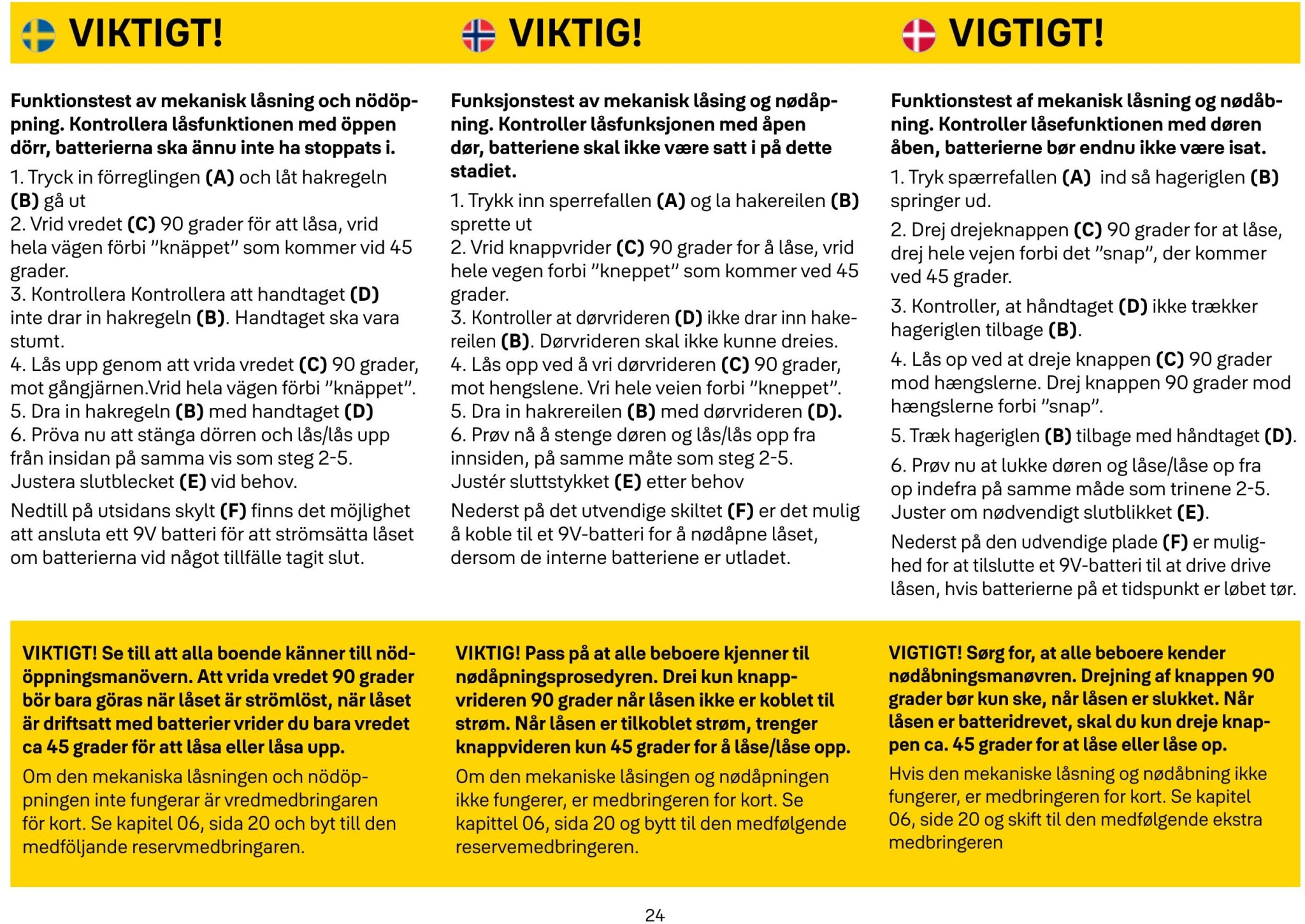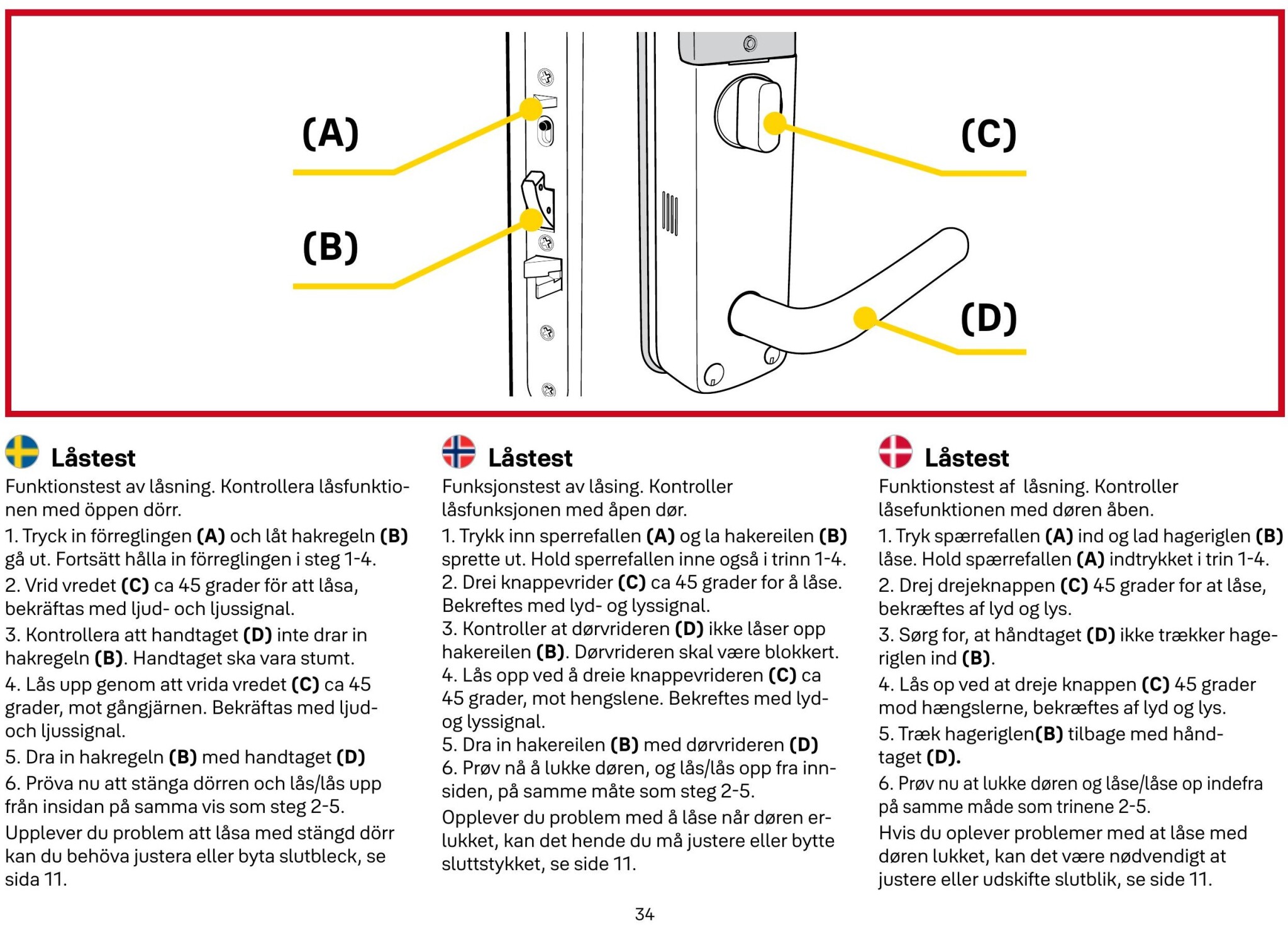 Du måste utföra låstestet steg för steg innan du låser enligt instruktionen i manualen.