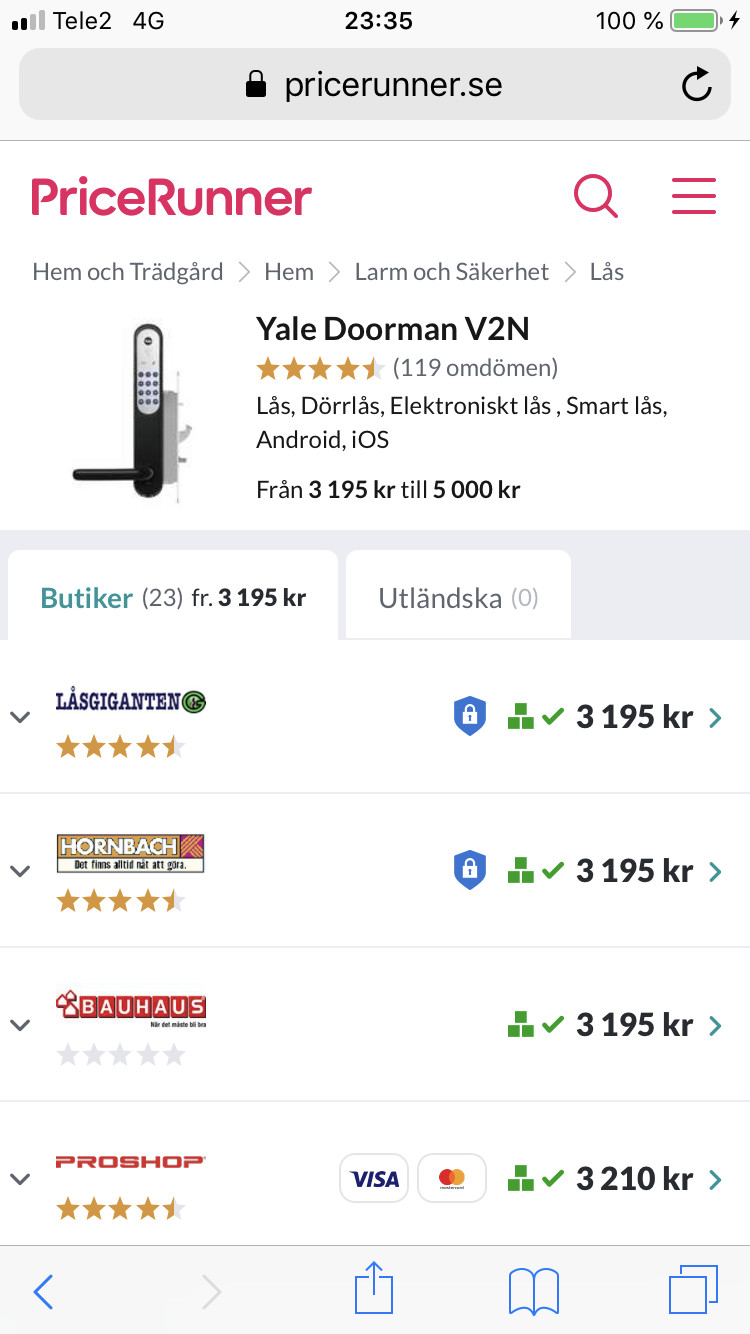 2. Yale Doorman sälj med ett rekommenderat utpris hos de flesta ”låsföretag”. Frågar man inte, får man antagligen betala det priset!