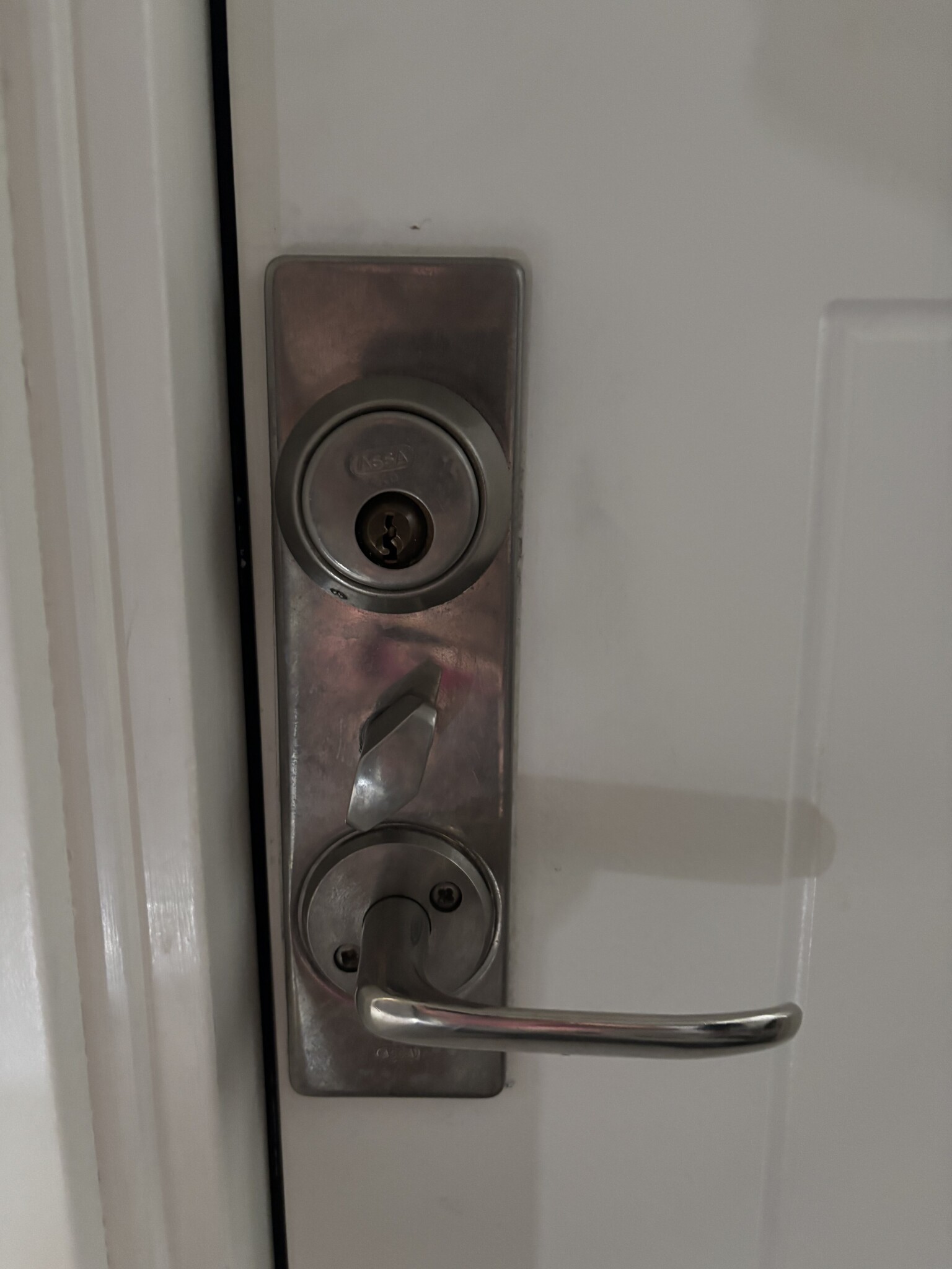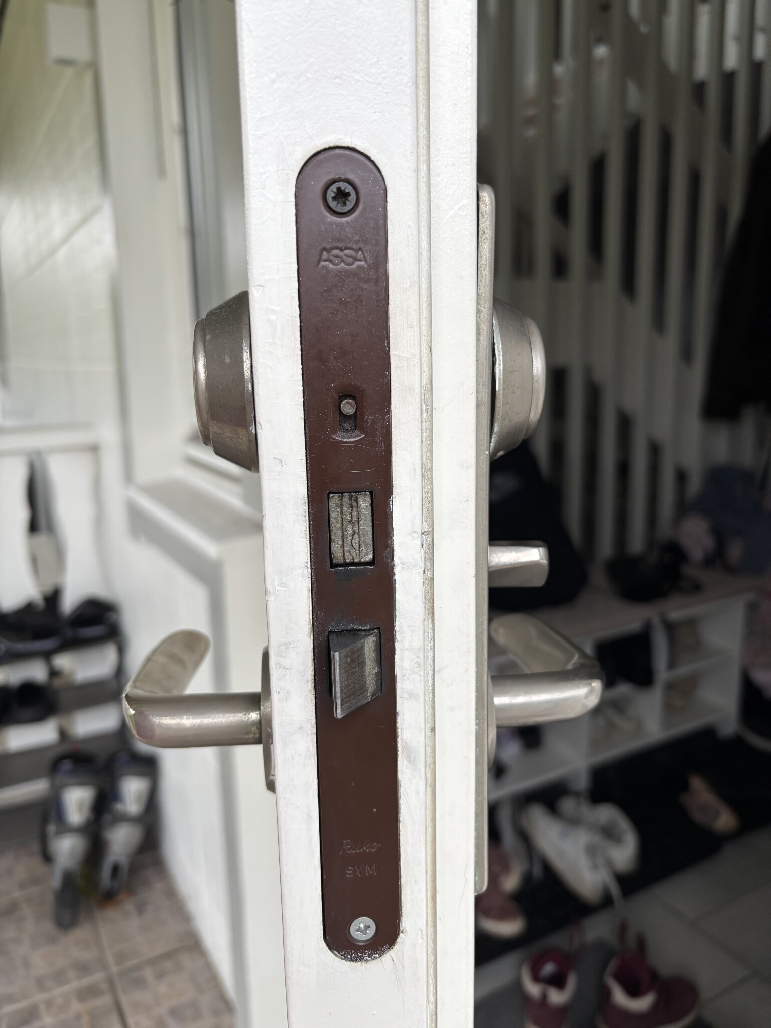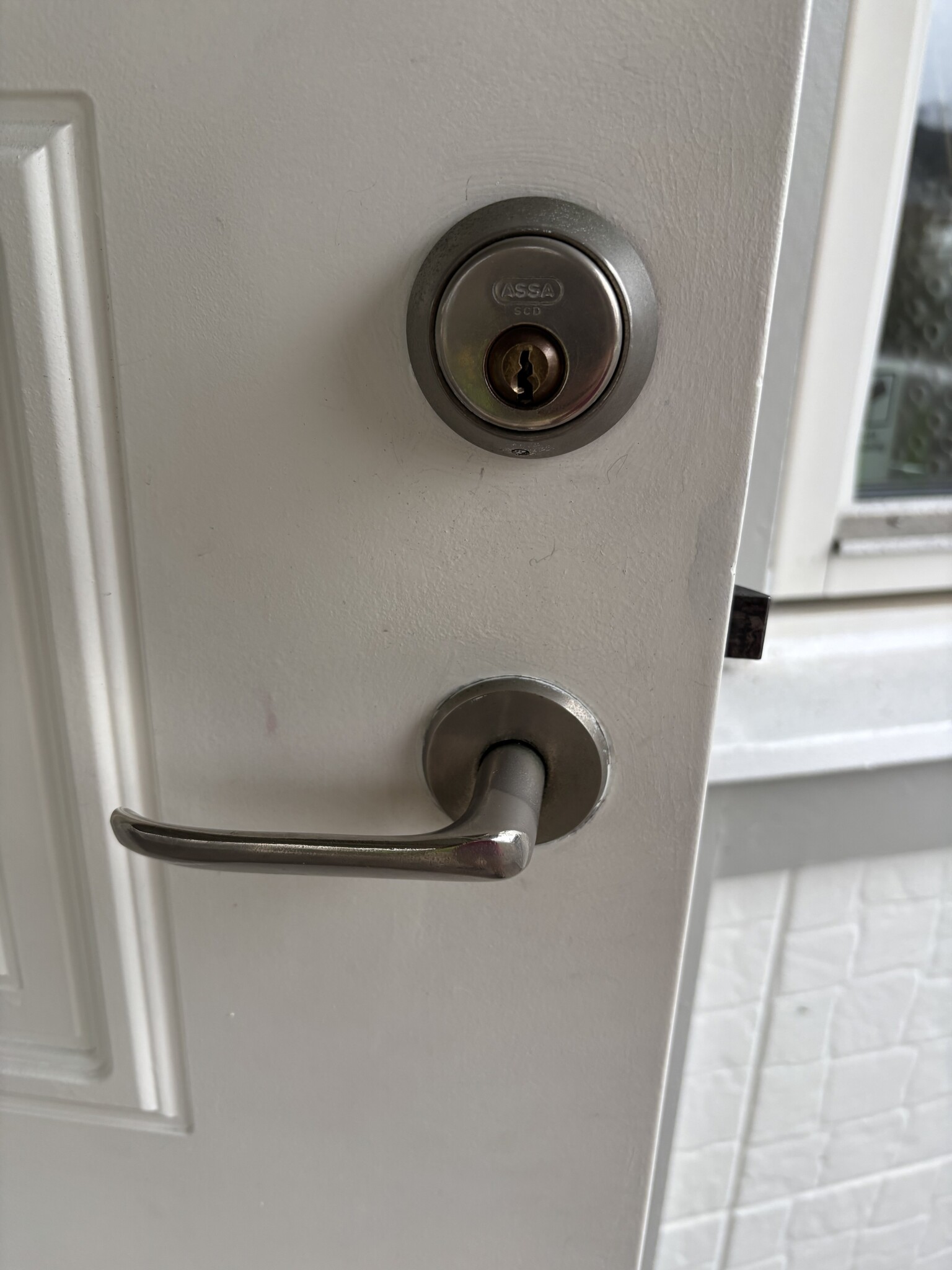 Hus från 90-talet. Skulle vilja ha ett lås på ytterdörren som passar detta. Gärna kan öppnas med blip, kod eller telefon.