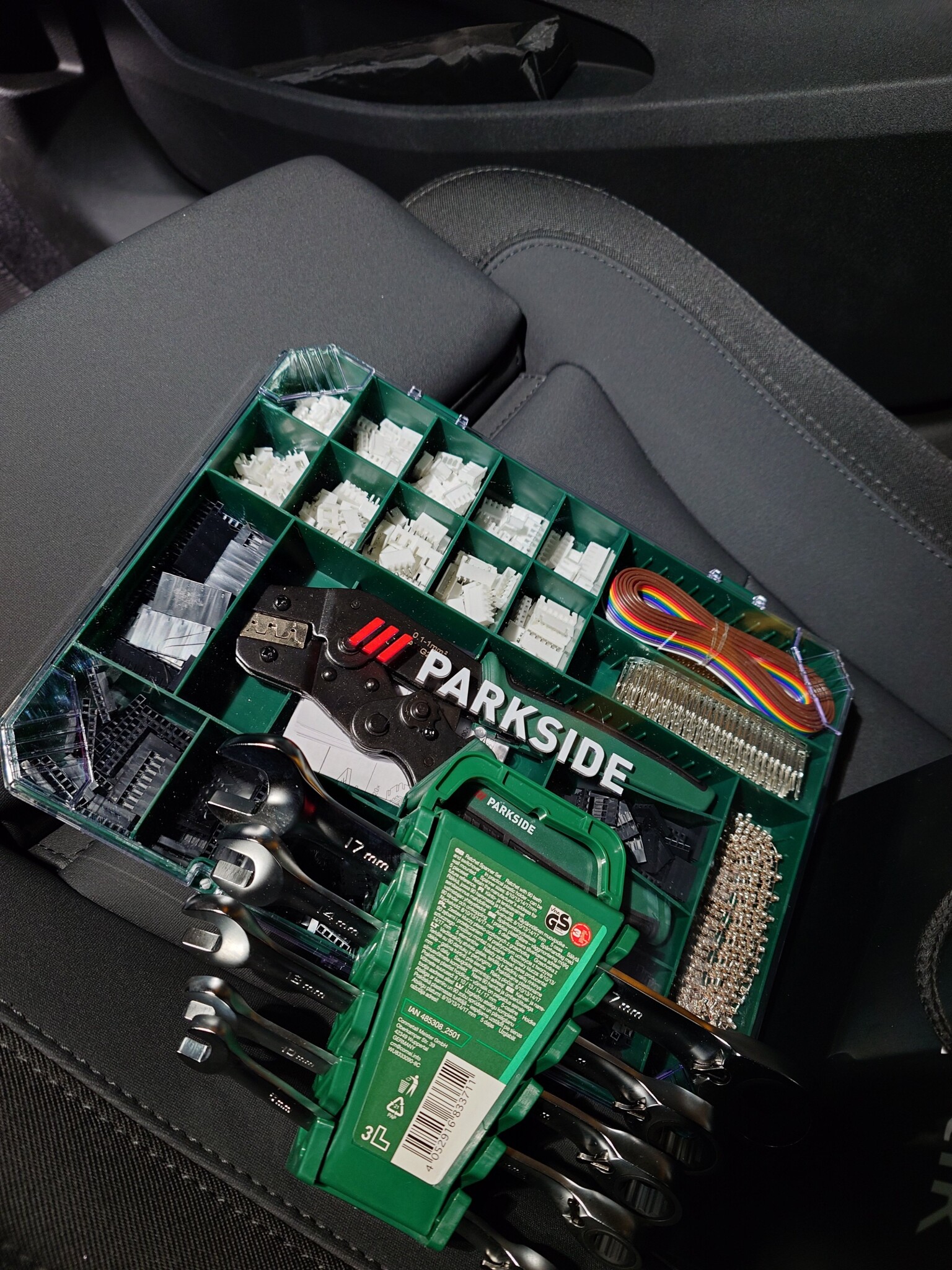 Jag nästan funderar på att köpa den där crimp-tången, men bara för att få en bra låda att ha min kombinerade kabelsko/ändhylsetång i, samt en massa kabelskor och ändhylsor.